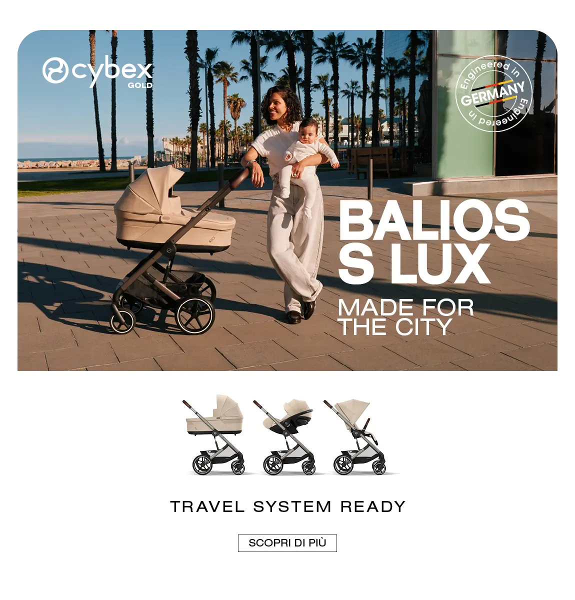 Balios S Lux mantiene il tuo piccolo comodo e al sicuro: l’ideale per affrontare la città senza problemi.