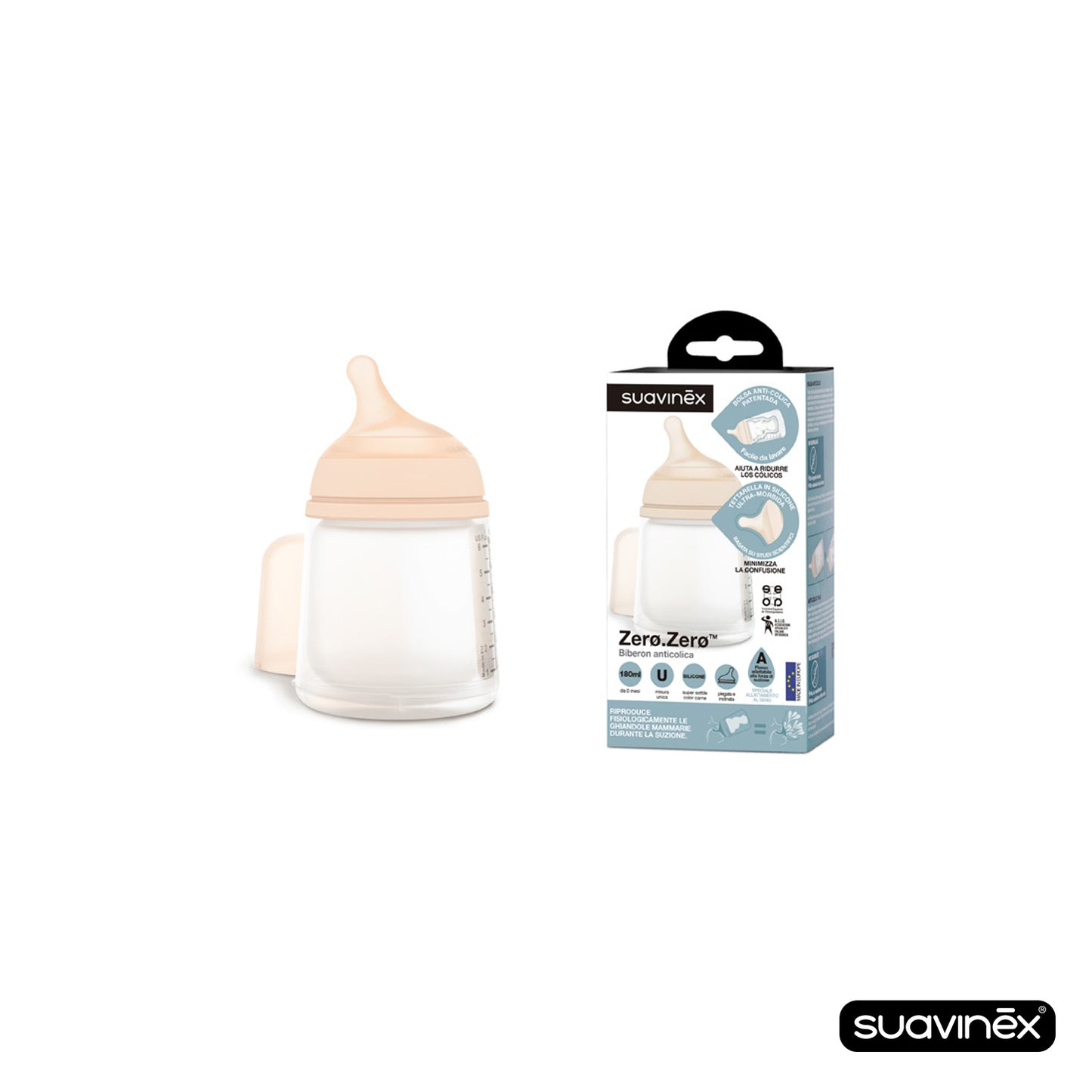 Suavinex - Biberon Anticolica ZERØ.ZERØ Speciale Allattamento è un biberon concepito con una speciale attenzione ai dettagli e un design innovativo che riproduce fisiologicamente le ghiandole mammarie durante la suzione.