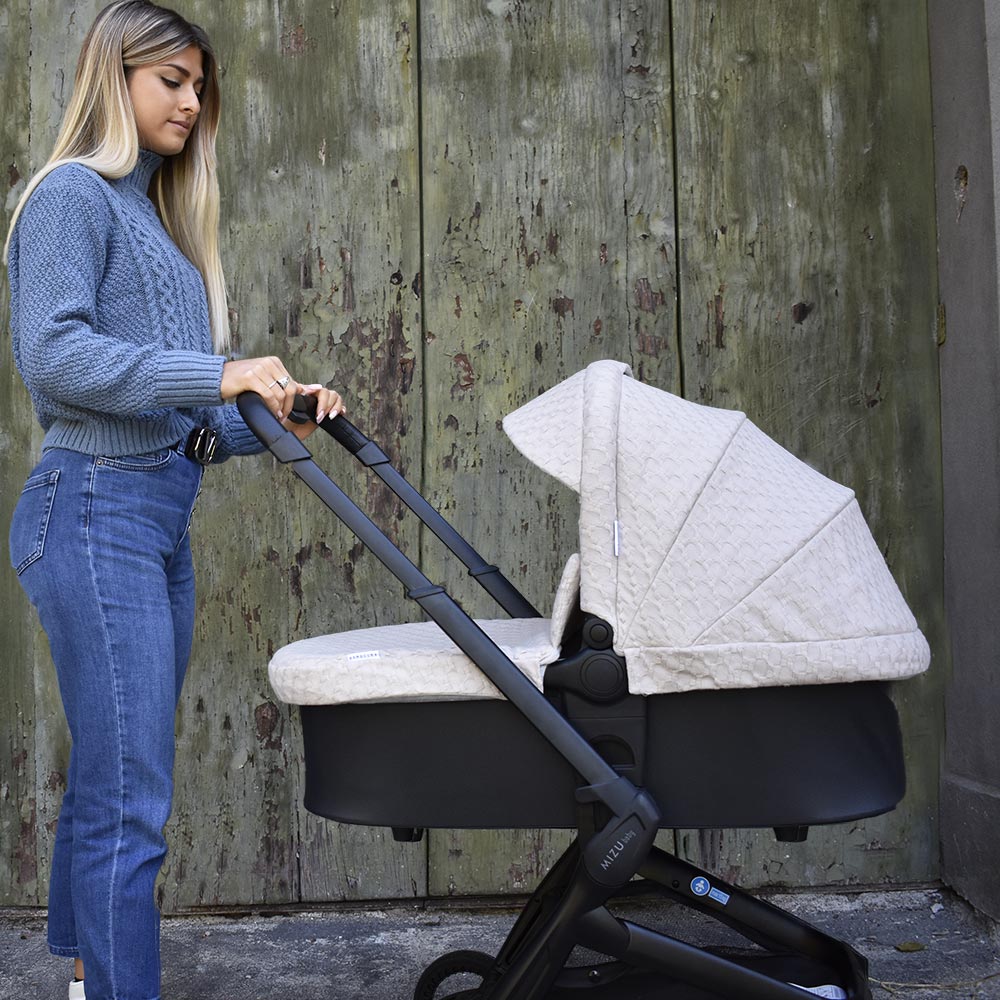 Mizu ha scelto di utilizzare le stoffe delle collezioni Bamboom nei suoi passeggini e sistemi trio più iconici creando così prodotti unici e ricercati.