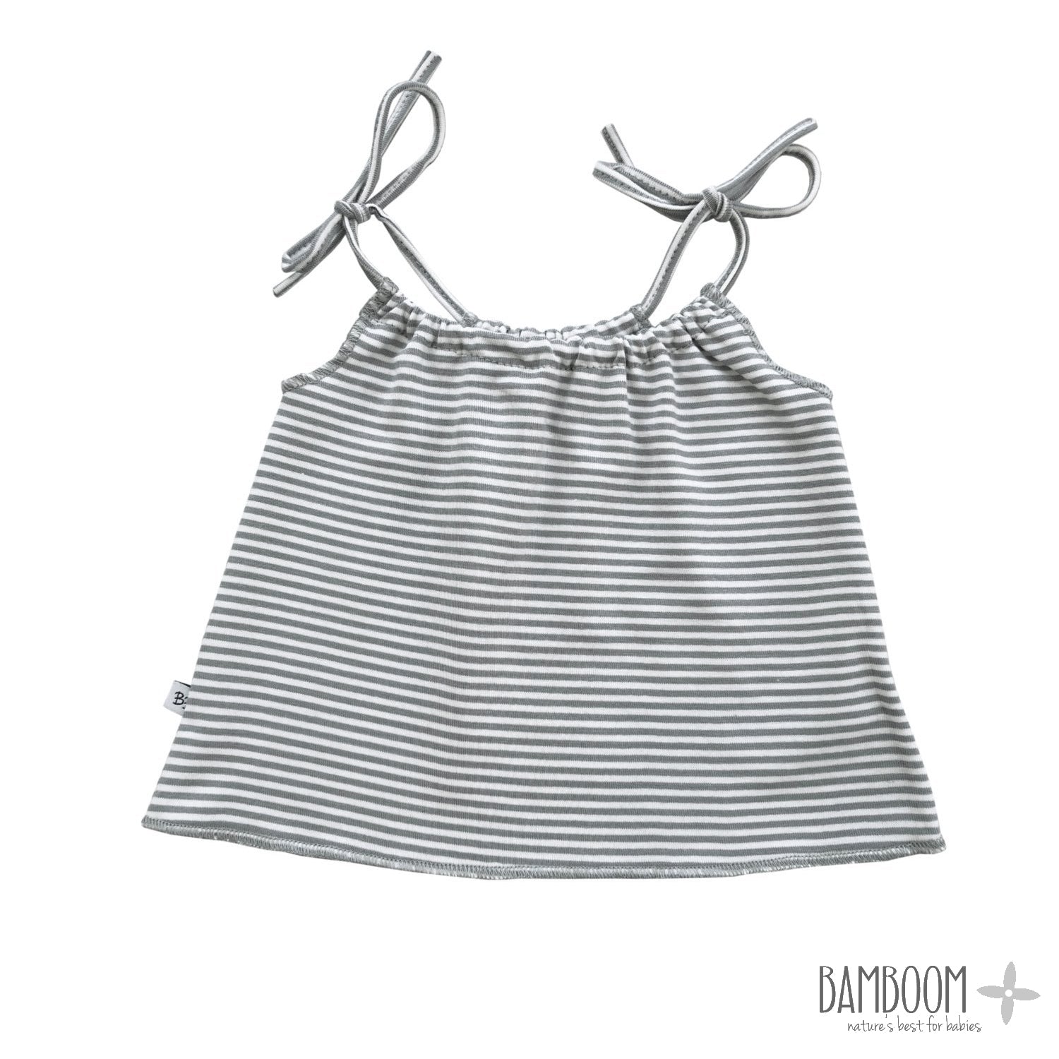 Striped Sleeveless Top perfect for the hottest period, equipped with beautiful strings to tie in a bow. Distinguished by super soft and breathable bamboo fabric, it guarantees maximum comfort for the baby's skin. The bamboo fiber has incredible antibacterial, hypoallergenic characteristics and protects against UV rays.