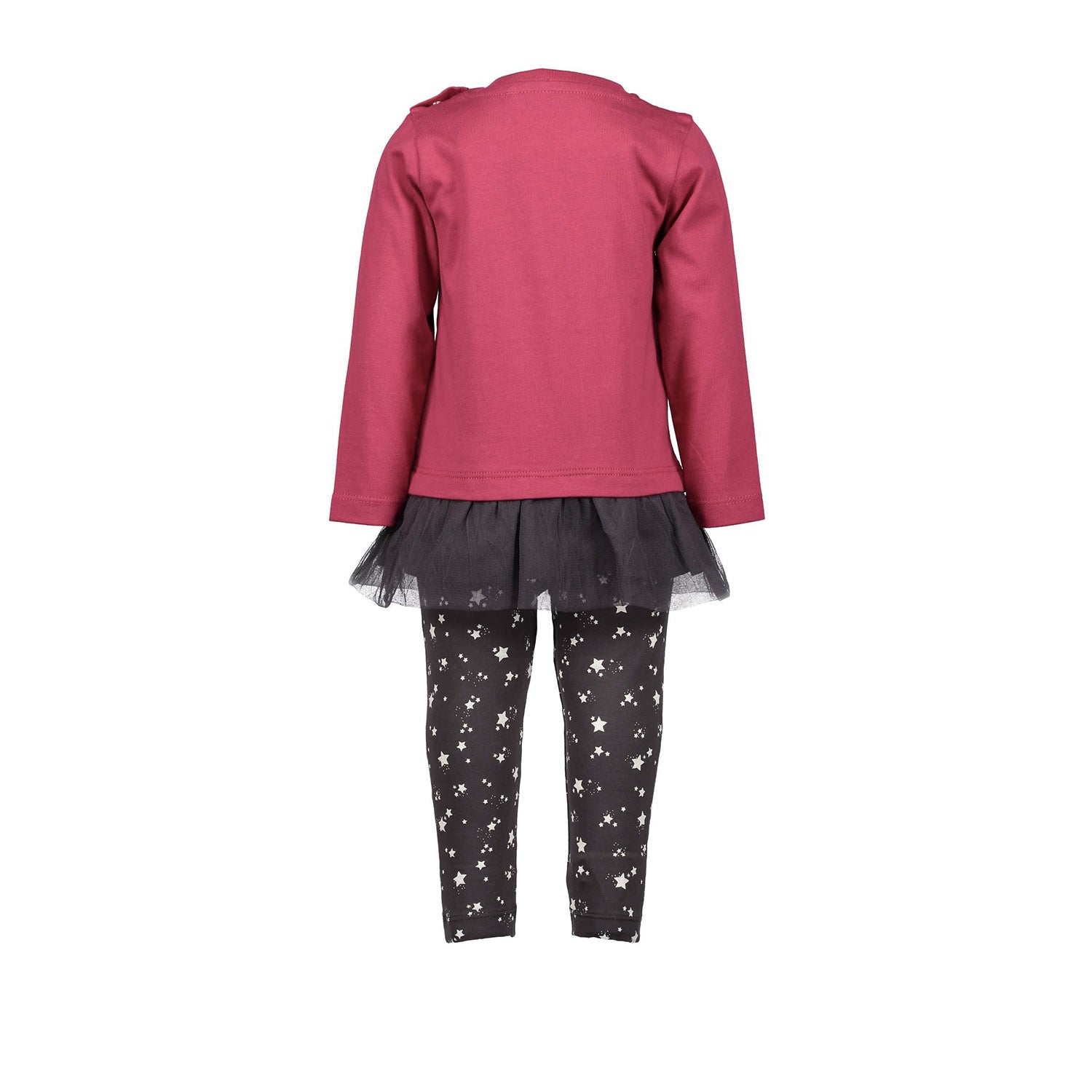 Blue Seven - Baby Girl T-Shirt + Pants Set T-shirt and pants set for baby girl, magenta t-shirt with patterns and integrated skirt and button closure over the left shoulder.