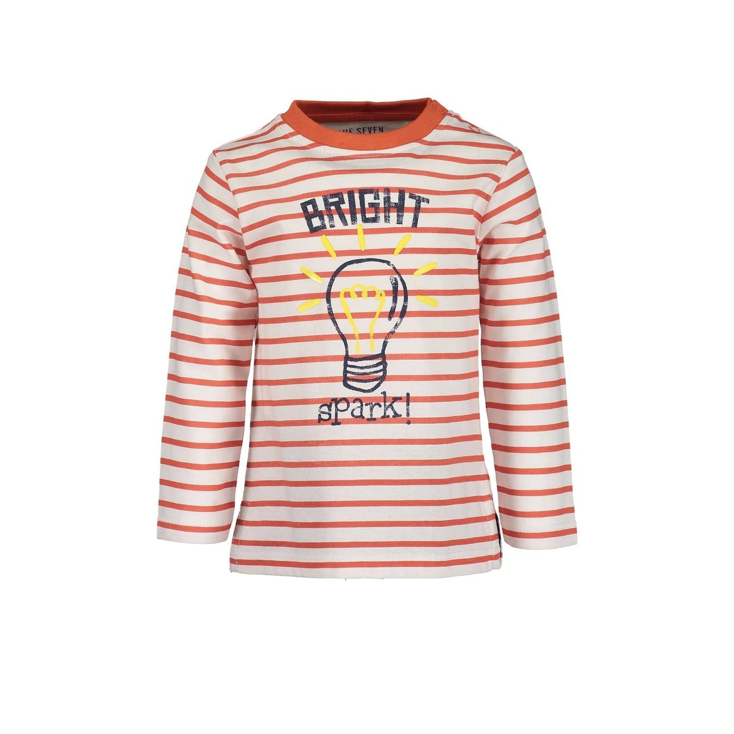 Blue Seven - Tomato Baby Long Sleeves T-Shirt Child baby boy long sleeved t-shirt with white and tomato stripes, with a pattern drawn on the chest.