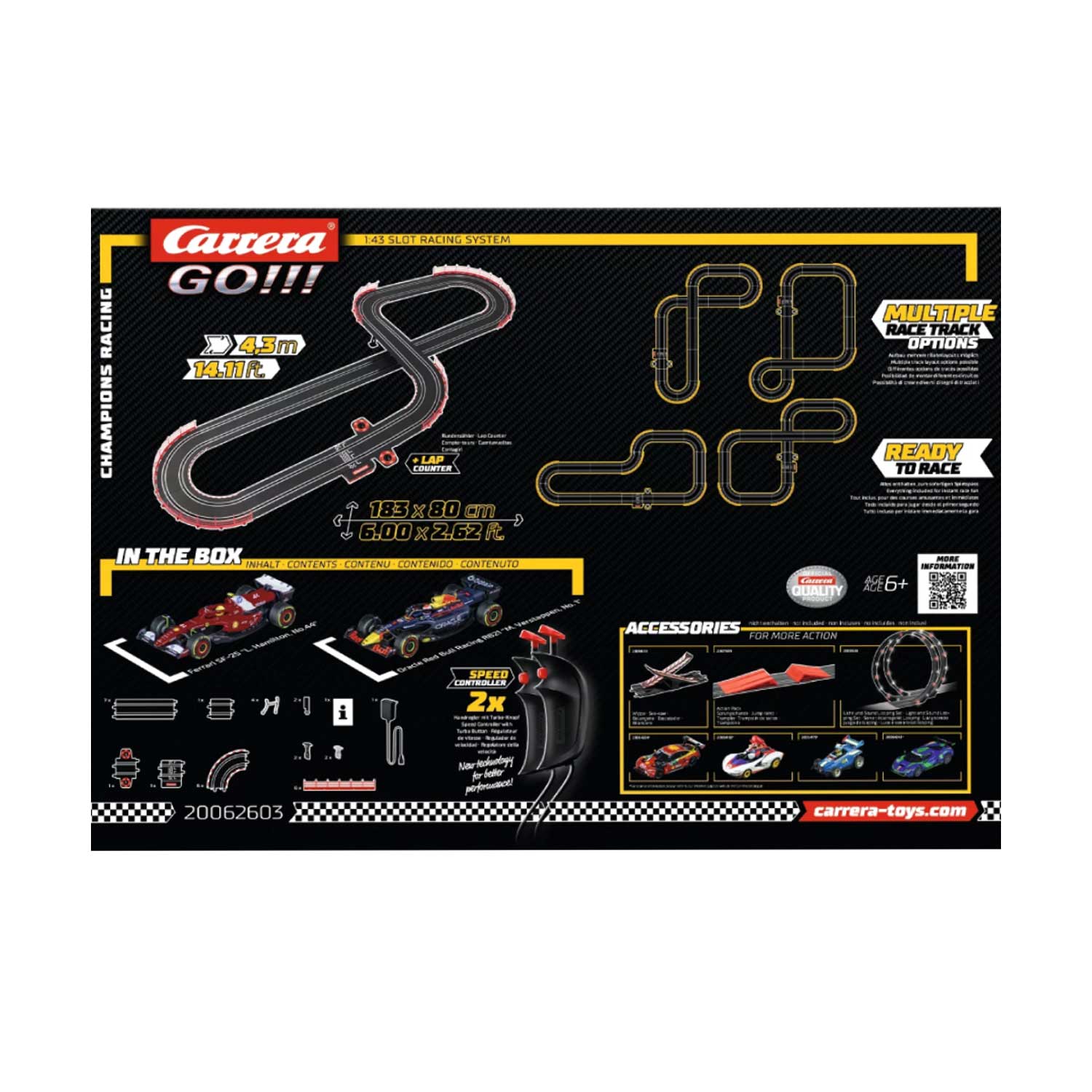 Sul tracciato della corsa dei campioni da 4,3 metri, si sfidano la Red Bull RB21 di Verstappen e la Ferrari SF-25 di Hamilton, in una corsa adrenalinica che richiede riflessi pronti e sangue freddo. Con comandi manuali e funzione turbo, ogni curva è una sfida e ogni rettilineo un'opportunità di sorpasso.