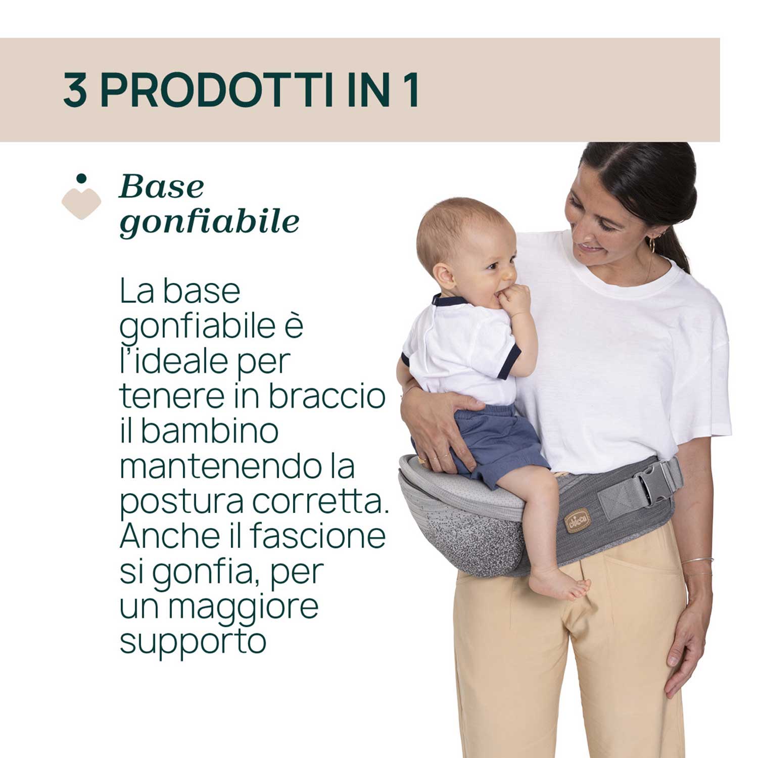Airy Hip Fit è il marsupio ergonomico e multifunzionale con supporto base removibile. Possono essere utilizzati insieme o separatamente, dando vita a 3 prodotti diversi e a molteplici opzioni per portare il bambino.