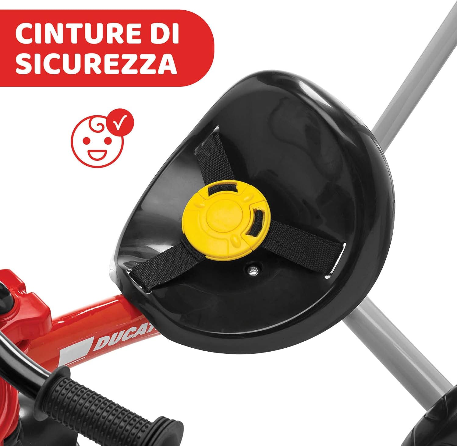 Push and go mode: The child is safe thanks to the seat belts and the parent can accompany him using the extendable and attachable handle;