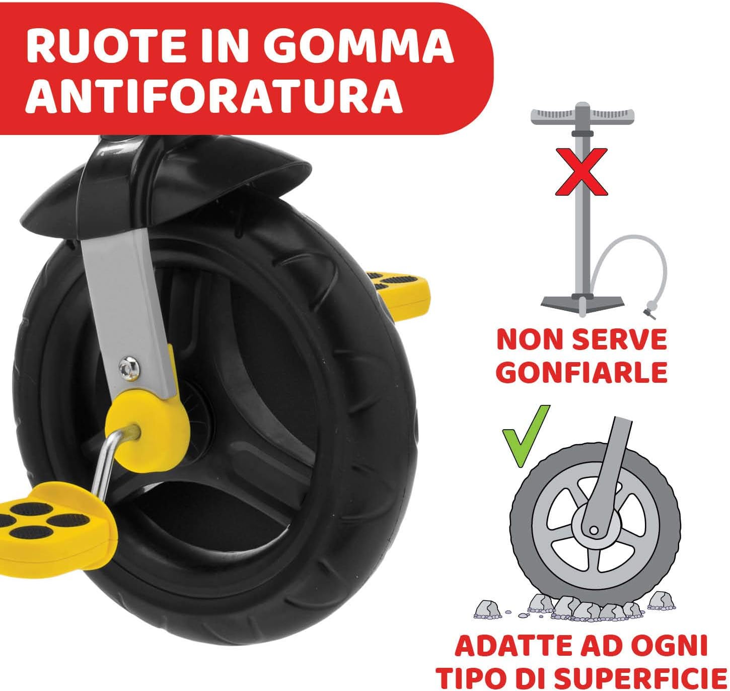 Tricycle mode in freedom: the child is free to move independently using the pedals.