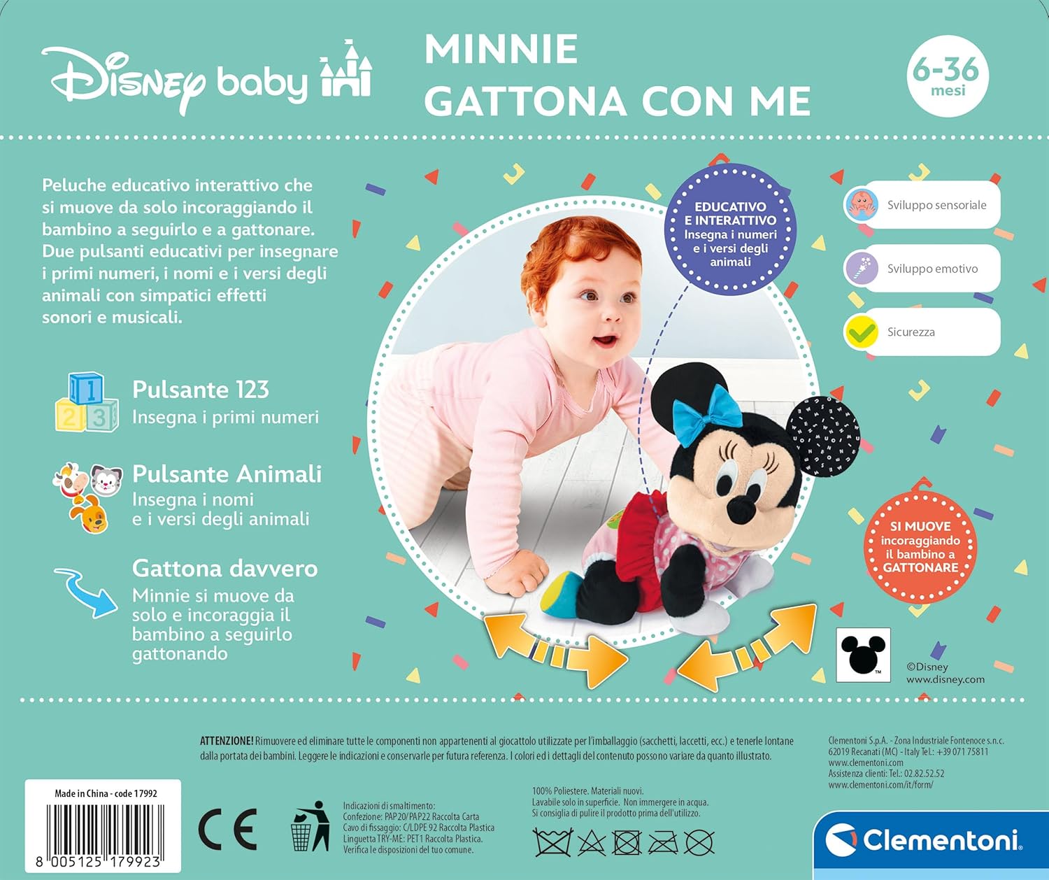 Baby Minnie gattona davvero e aiuta il bambino a sviluppare le capacità motorie attraverso il gioco imitativo.