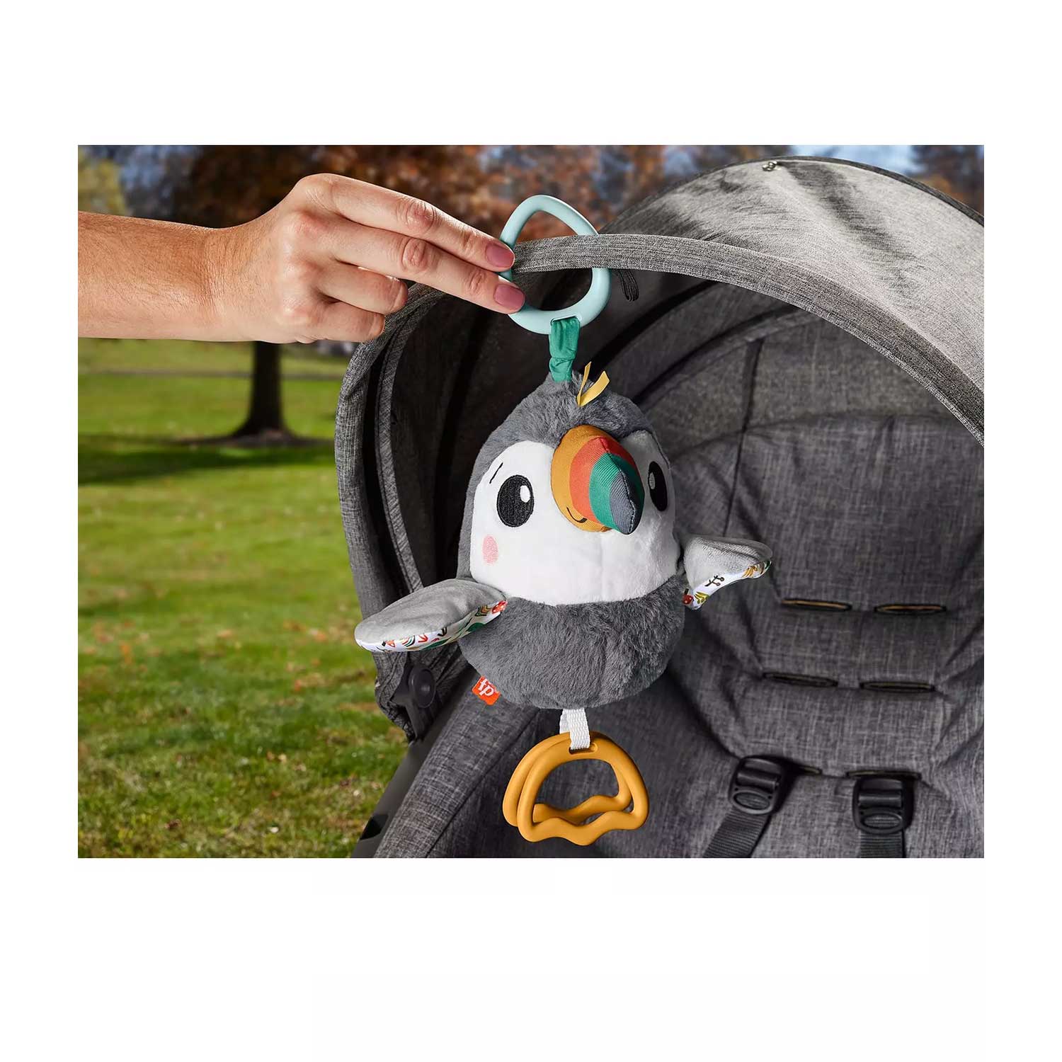 Il tuo bambino può intraprendere un'avventura sensoriale tropicale dalla comodità del suo passeggino con il giocattolo per passeggino Flap & Go Toucan di Fisher-Price.