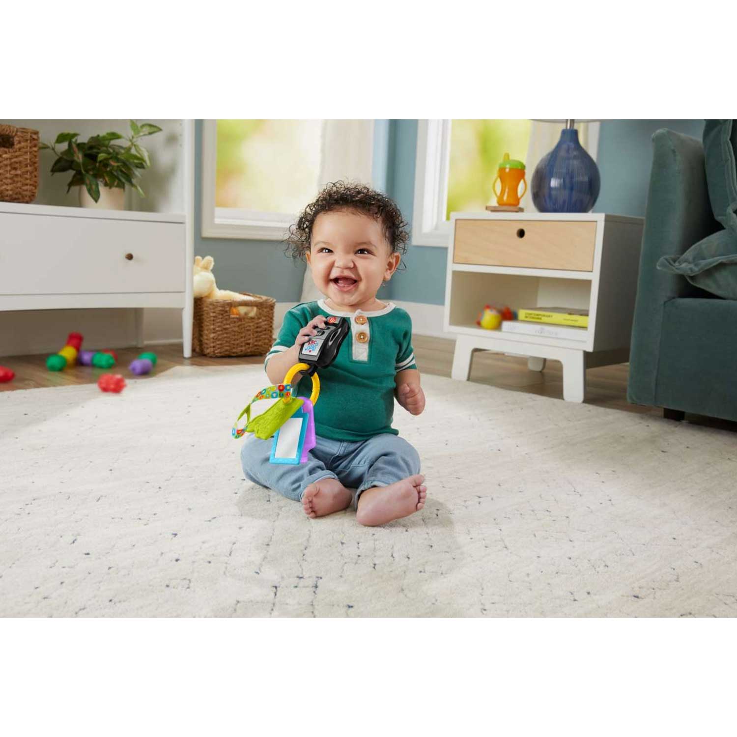 I bambini sono pronti a partire per divertenti avventure all'insegna dell'apprendimento con le Chiavi Gioca e Vai Ridi e Impara di Fisher-Price. Questo giocattolo per bambini a tema viaggio offre 4 attività coinvolgenti su un cordino in tessuto facile da afferrare, tra cui un portachiavi della macchina musicale, un morbido flacone di 'disinfettante per le mani', uno specchio con 'cornice' e un dentaruolo a forma di badge per palestra.