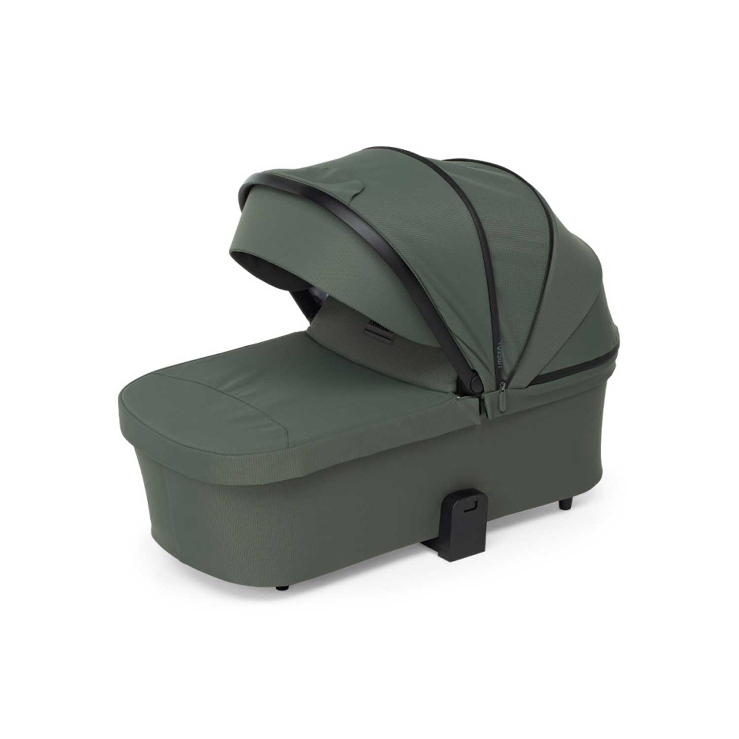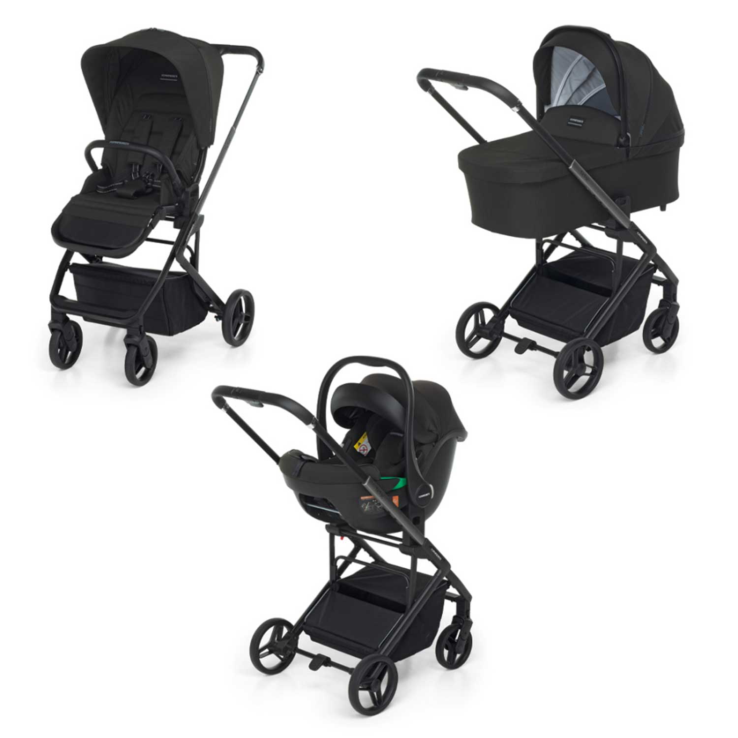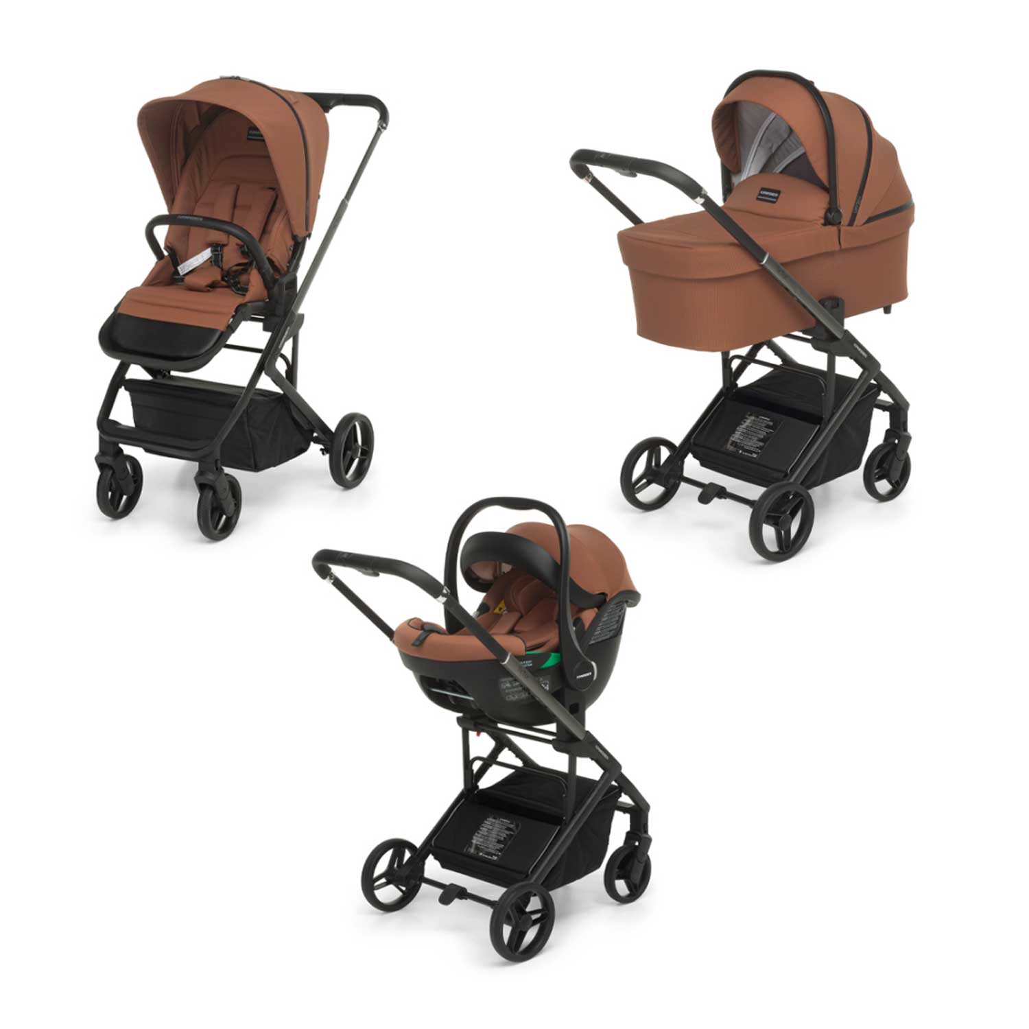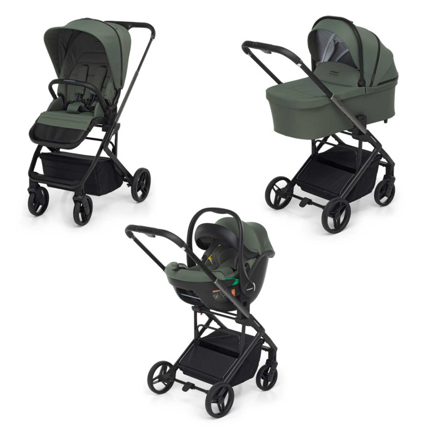 Telaio leggero in alluminio Self Standing con dettagli cromati possono essere montati la navicella spaziosa, interno sfoderabile e pieghevole per chiusura compatta, poi la seduta passeggino reversibile e chiudibile fronte strada e fronte mamma con schienale areato, utilizzabile fin dalla nascita, e il seggiolino auto i-Size per i primi mesi. Maniglione telescopico regolabile.