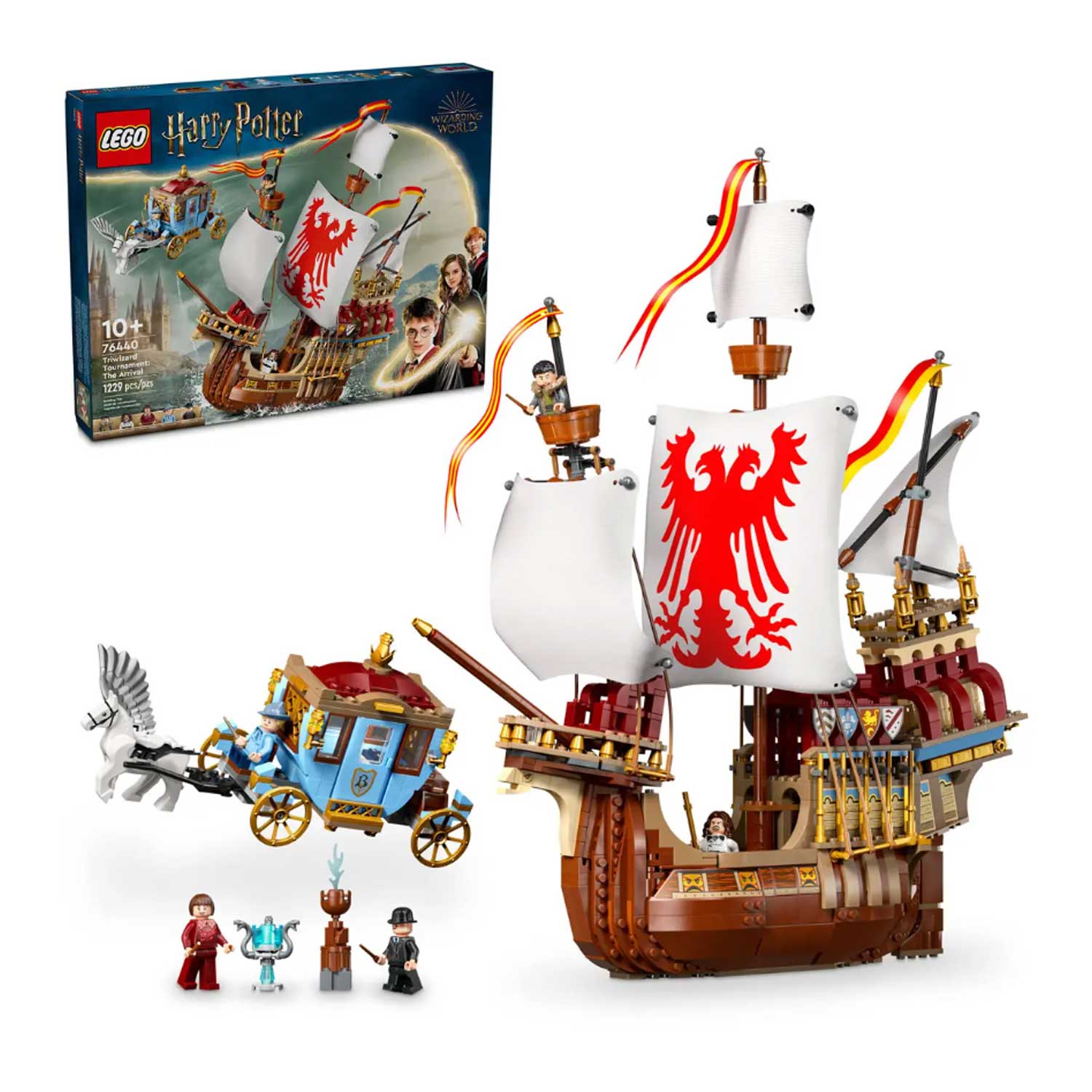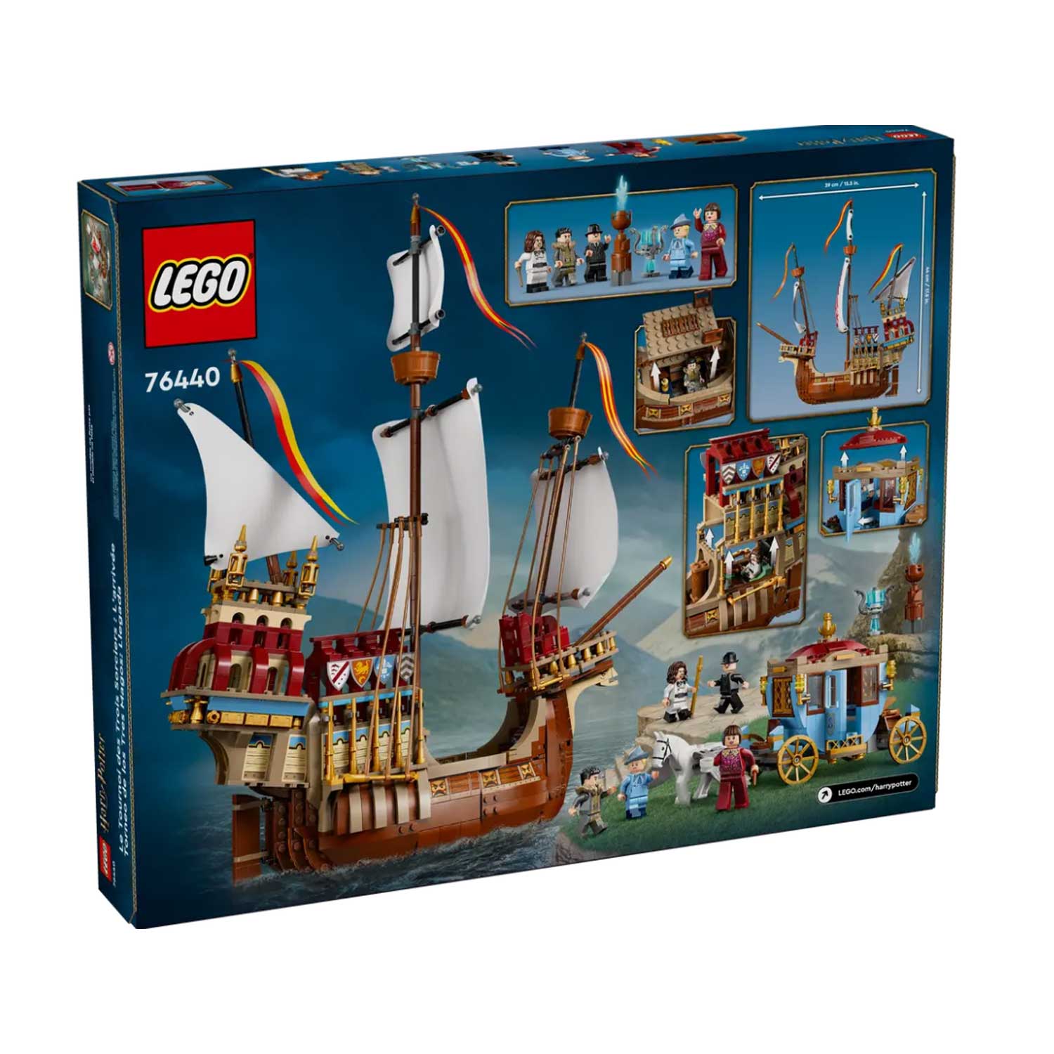 - Set di gioco con nave e 5 minifigure LEGO Harry Potter: Viktor Krum, Igor Karkaroff, Barty Crouch Sr., Madame Maxime e Fleur Delacour, più elementi accessori tra cui il Calice di Fuoco.