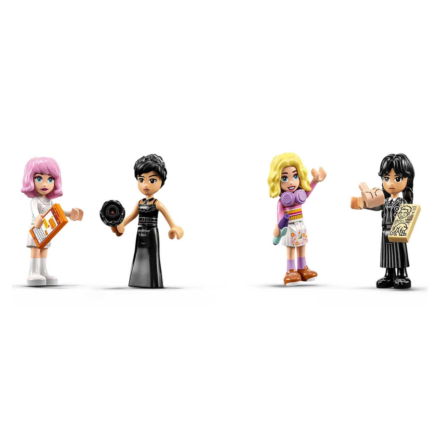 - Set della Nevermore Academy: il set da gioco con scuola include un dormitorio costruibile con una finestra a forma di ragnatela che si apre, una base con pulsanti che aprono cassetti segreti e un balcone con 4 doccioni.