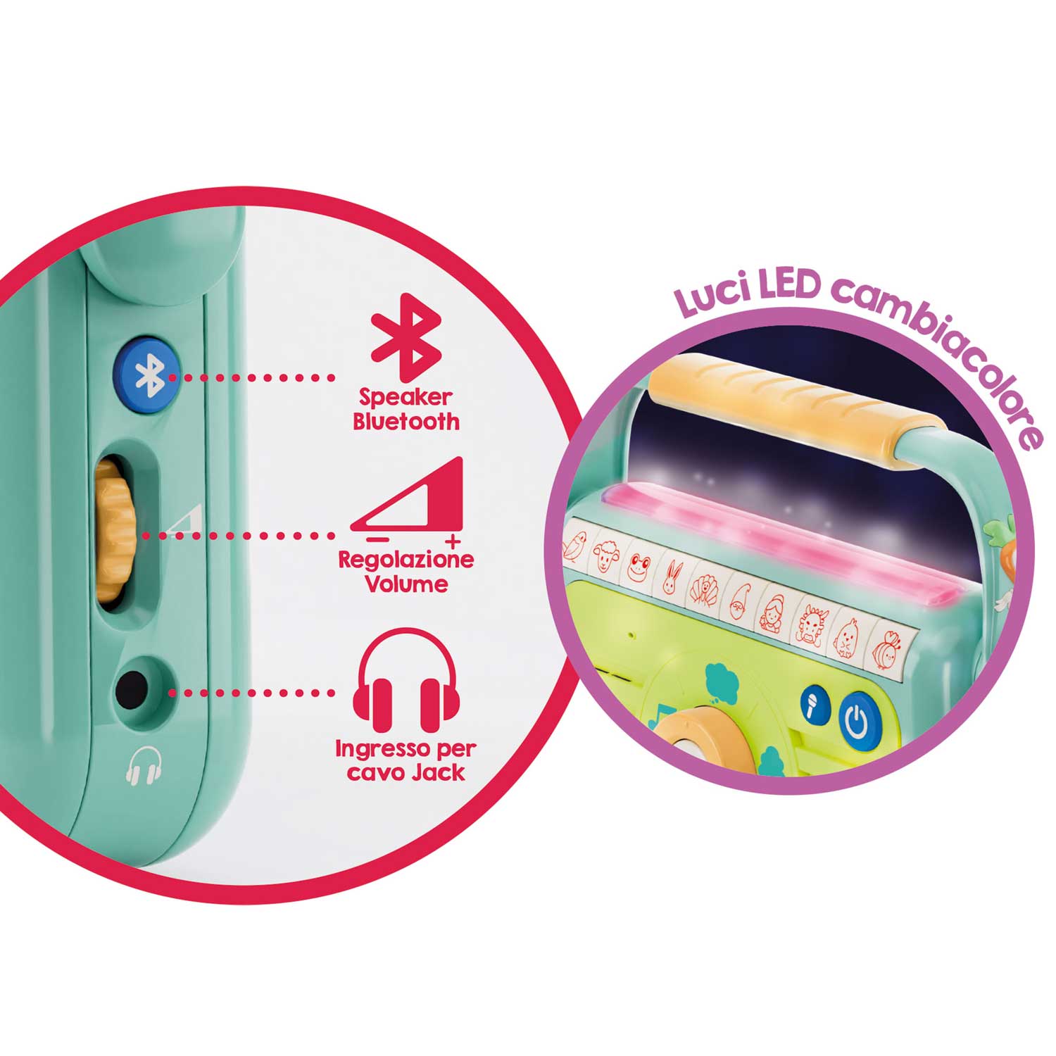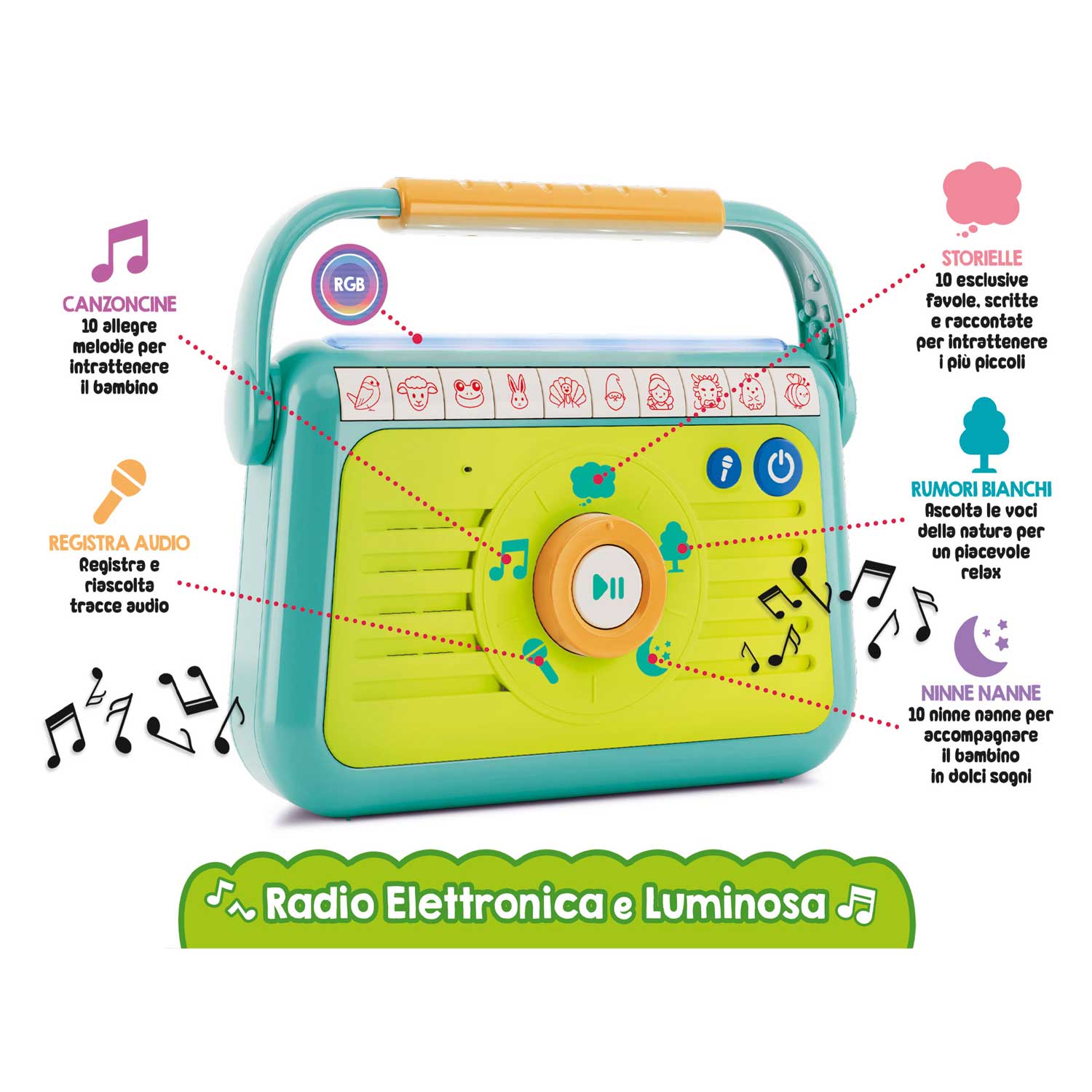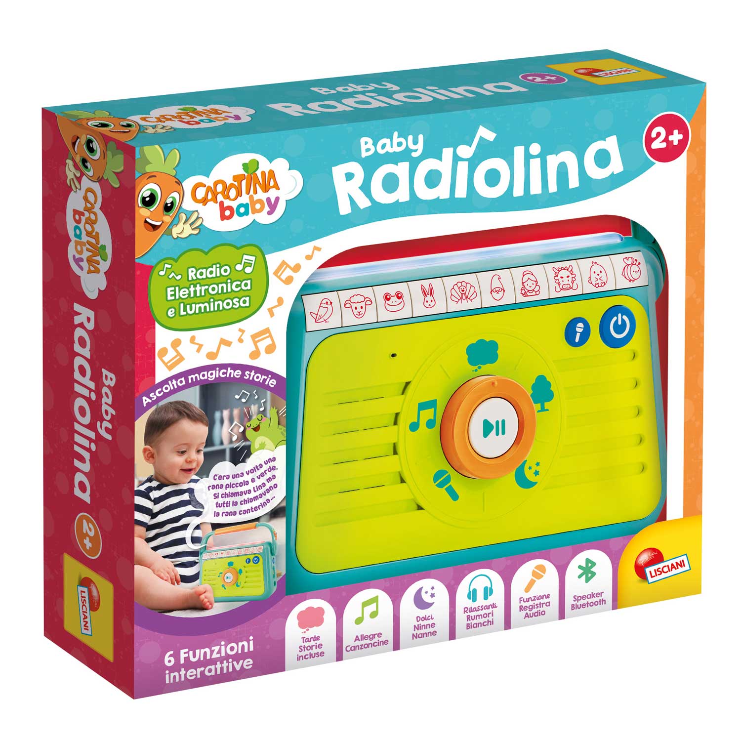 Carotina Baby tiene compagnia ai più piccoli con questa colorata radiolina portatile. Tante storielle, melodie e canzoncine esclusive per intrattenere il bambino. E in più, funziona anche da speaker bluetooth per ascoltare tutta la musica che vuoi!