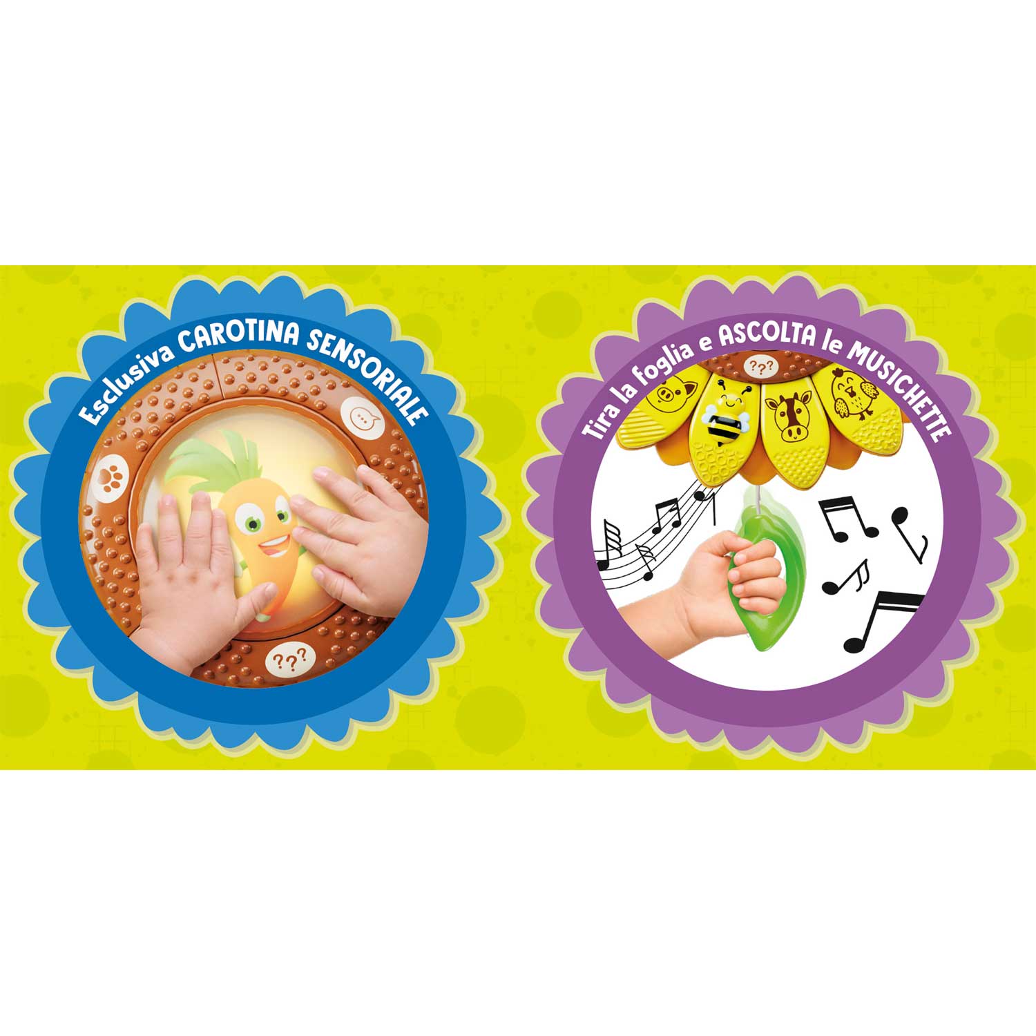 Scopri gli animali della fattoria con il girasole di Carotina! Un gioco elettronico parlante, con tante funzioni educative. Con l’esclusiva Carotina sensoriale e i tasti con trame a rilievo, il bambino compie una coinvolgente esperienza tattile. Inoltre ascoltando parole, suoni e melodie, il bambino affina l’udito.