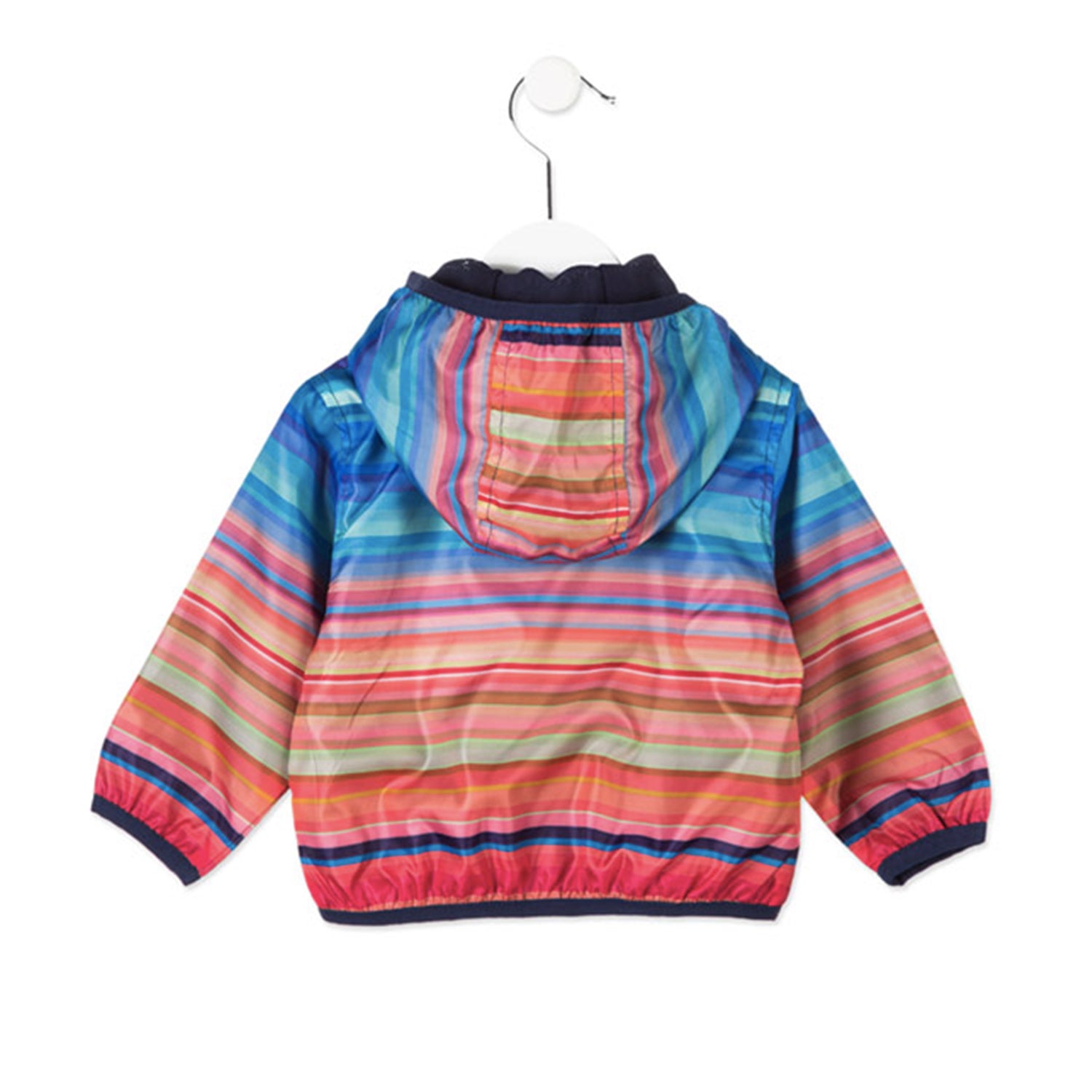 Losan - Baby Striped Jacket with Hood Striped jacket with removable hood with zip and print on the chest. Front pockets with zip. Elastic hem and cuffs. Inner lining and hood in blue micro mesh fabric. Ribbed fabric collar.
