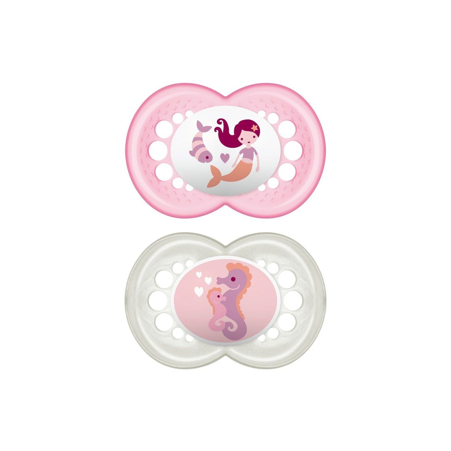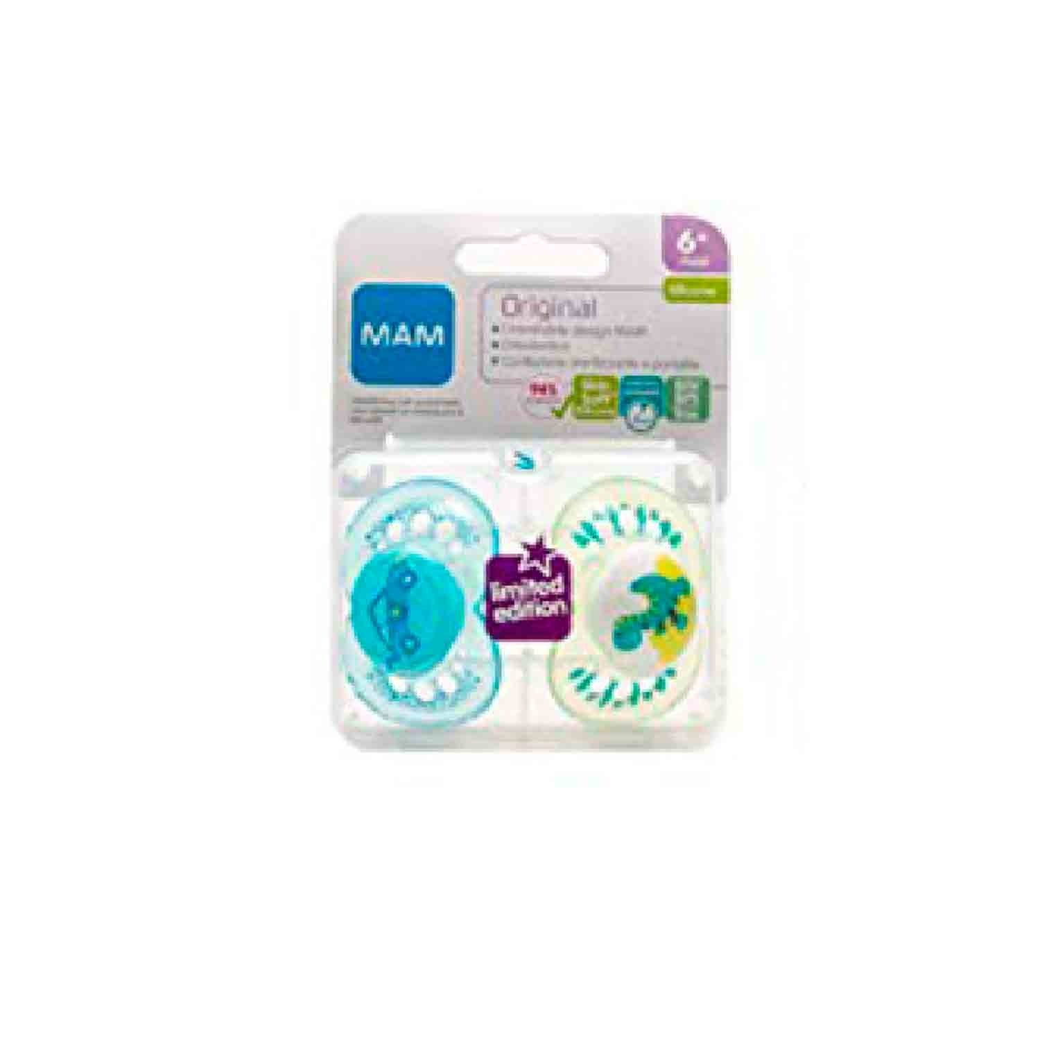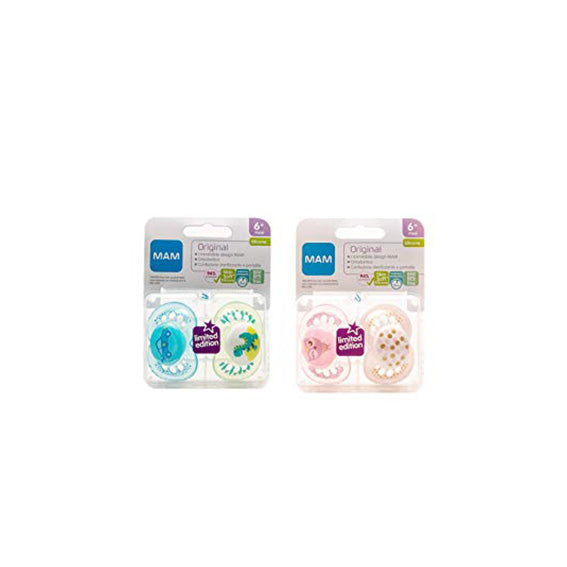 MAM Original 6+ contains 2 silicone soothers for your newborn from 6 months onwards with a silicone teat