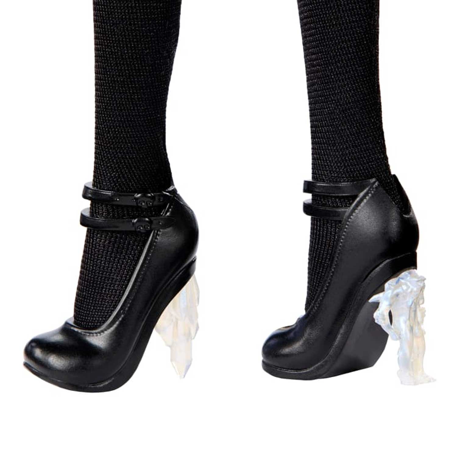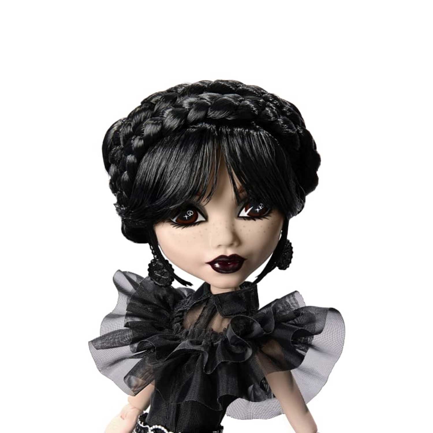 - Una triste serata! L'abito nero di mezzanotte, un abito vintage ispirato a quello del suo personaggio nella scena del ballo scolastico presente nella serie, dona alla bambola Rave'N Mercoledì uno stile gotico glam.