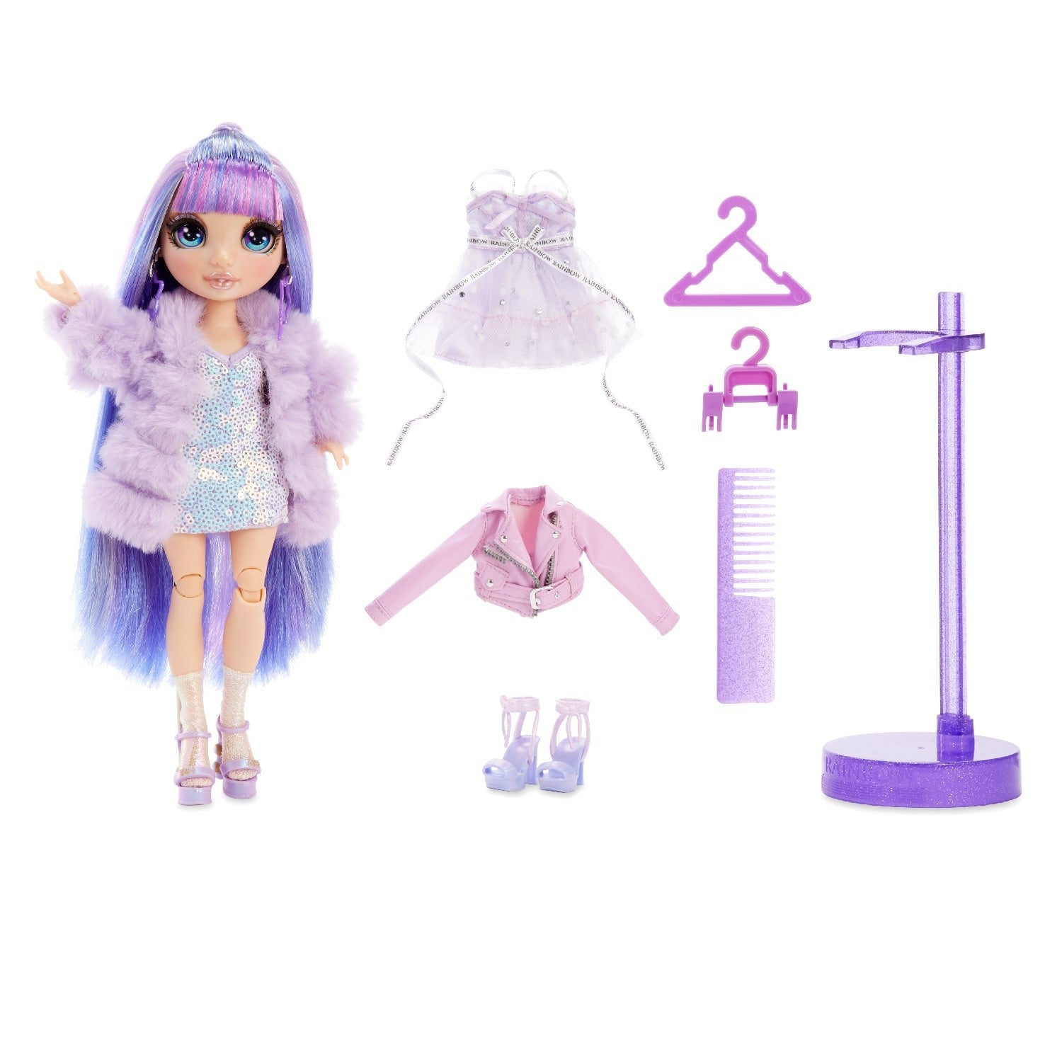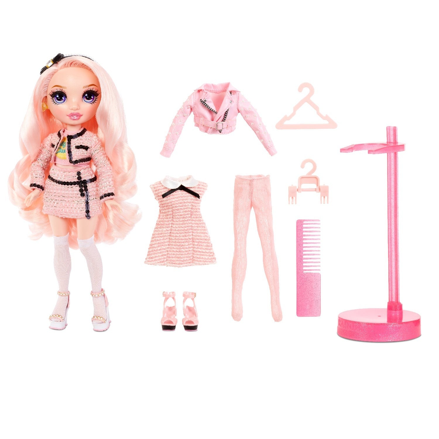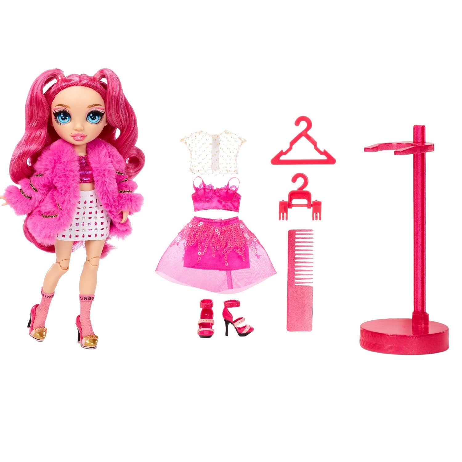 - INCLUDES: A Fashion Doll, 2 complete outfits, 2 pairs of shoes, a brush, 2 hangers and a doll stand