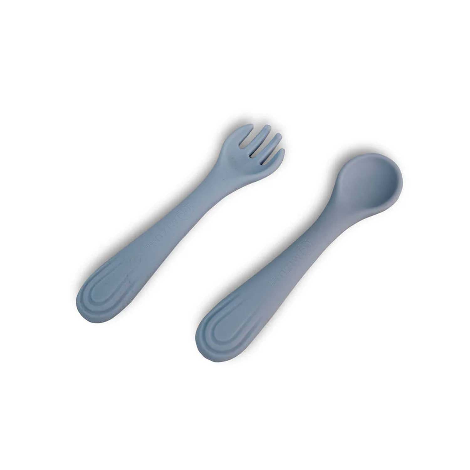 Cutlery set consisting of a spoon and fork in soft silicone, ideal for the little ones.