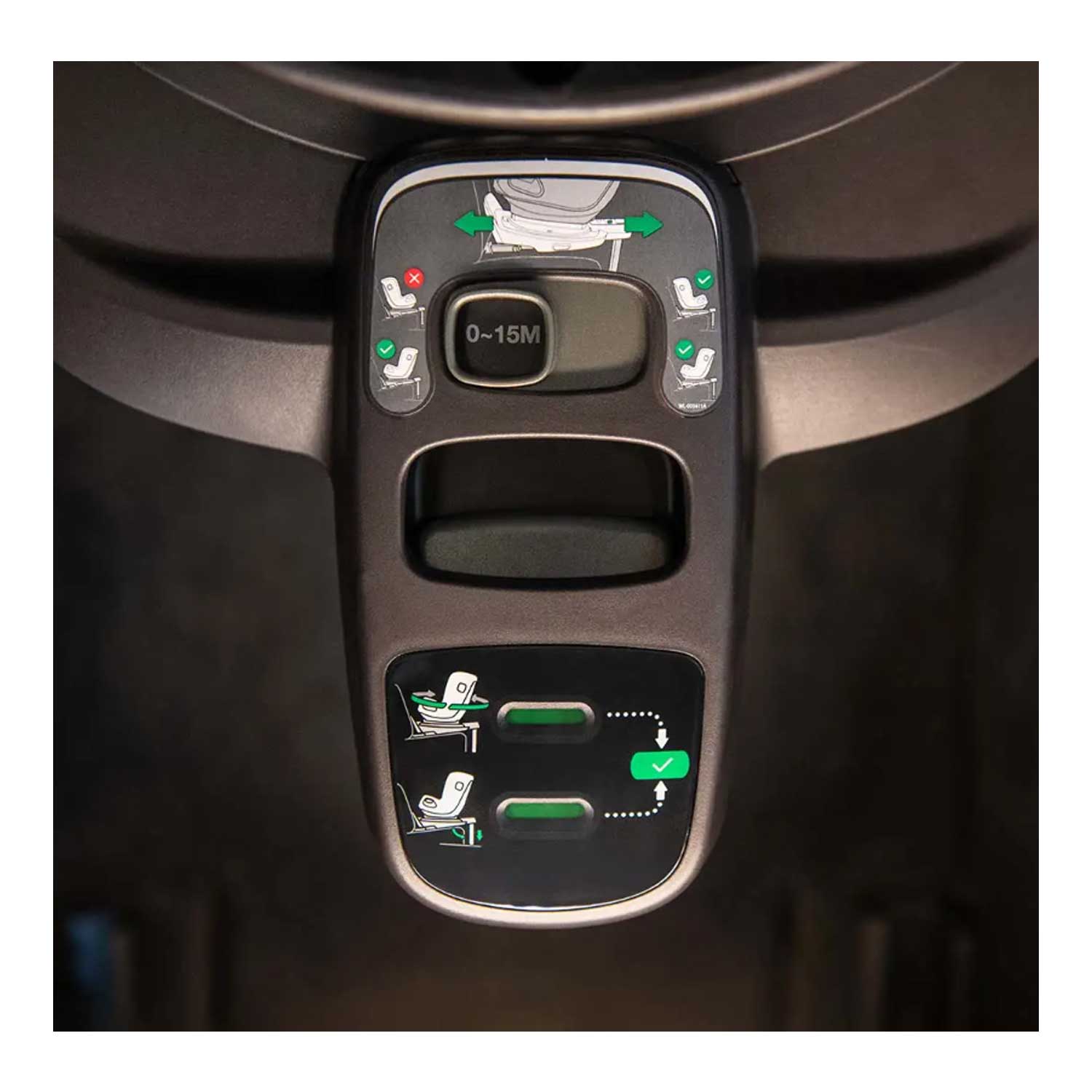 - Il display sicuro con indicatori a barre colorate sulla base conferma l'aggancio sicuro del seggiolino