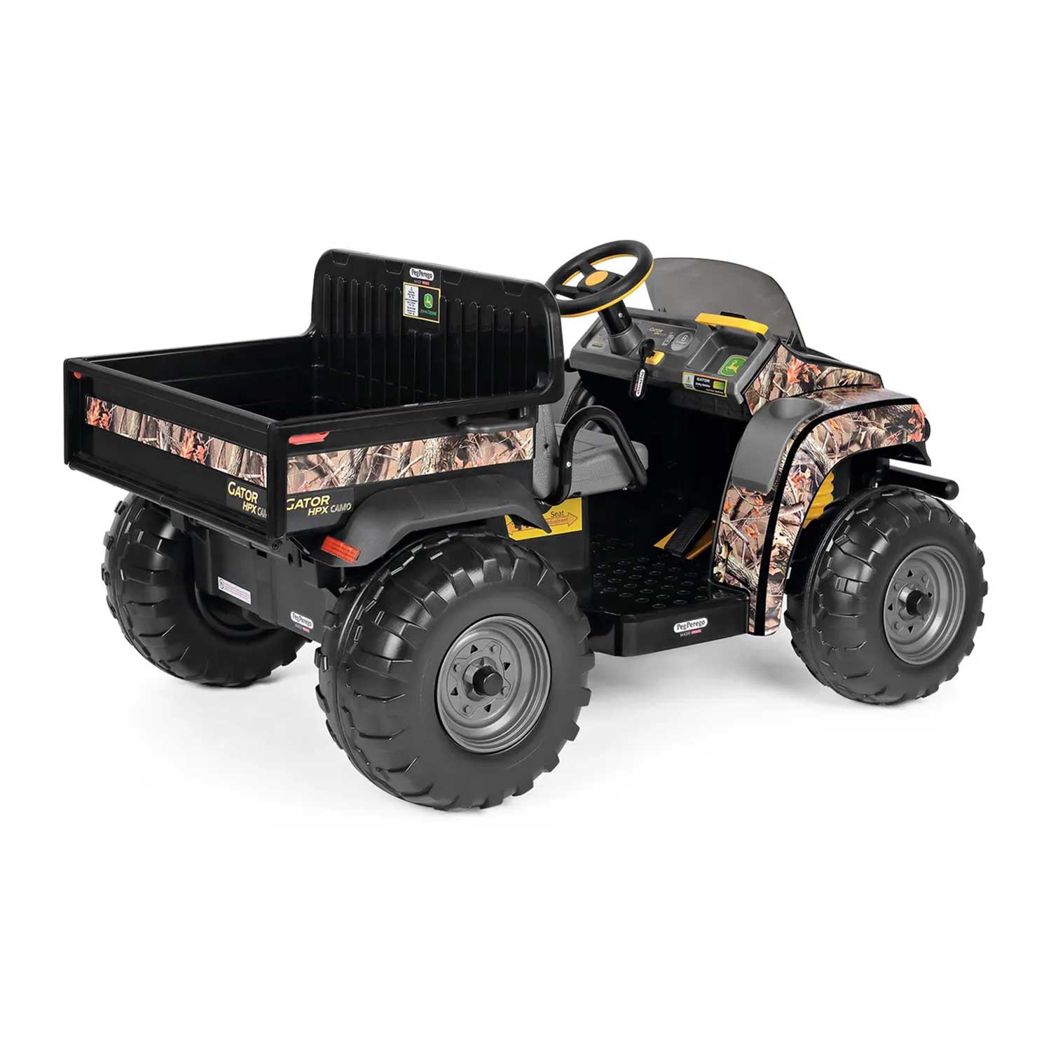 Scorrazzare, giocare, ribaltare: divertimento camo per due! Fantastico l’utility vehicle elettrico a due posti con batteria ricaricabile da 12V/12Ah/150Wh. John Deere Gator HPX Camo piace ai bimbi dai 3 anni in su che amano cimentarsi in avventure mirabolanti. Viaggia su tutte le superfici, anche le più accidentate e supera dislivelli con pendenza fino al 17%.