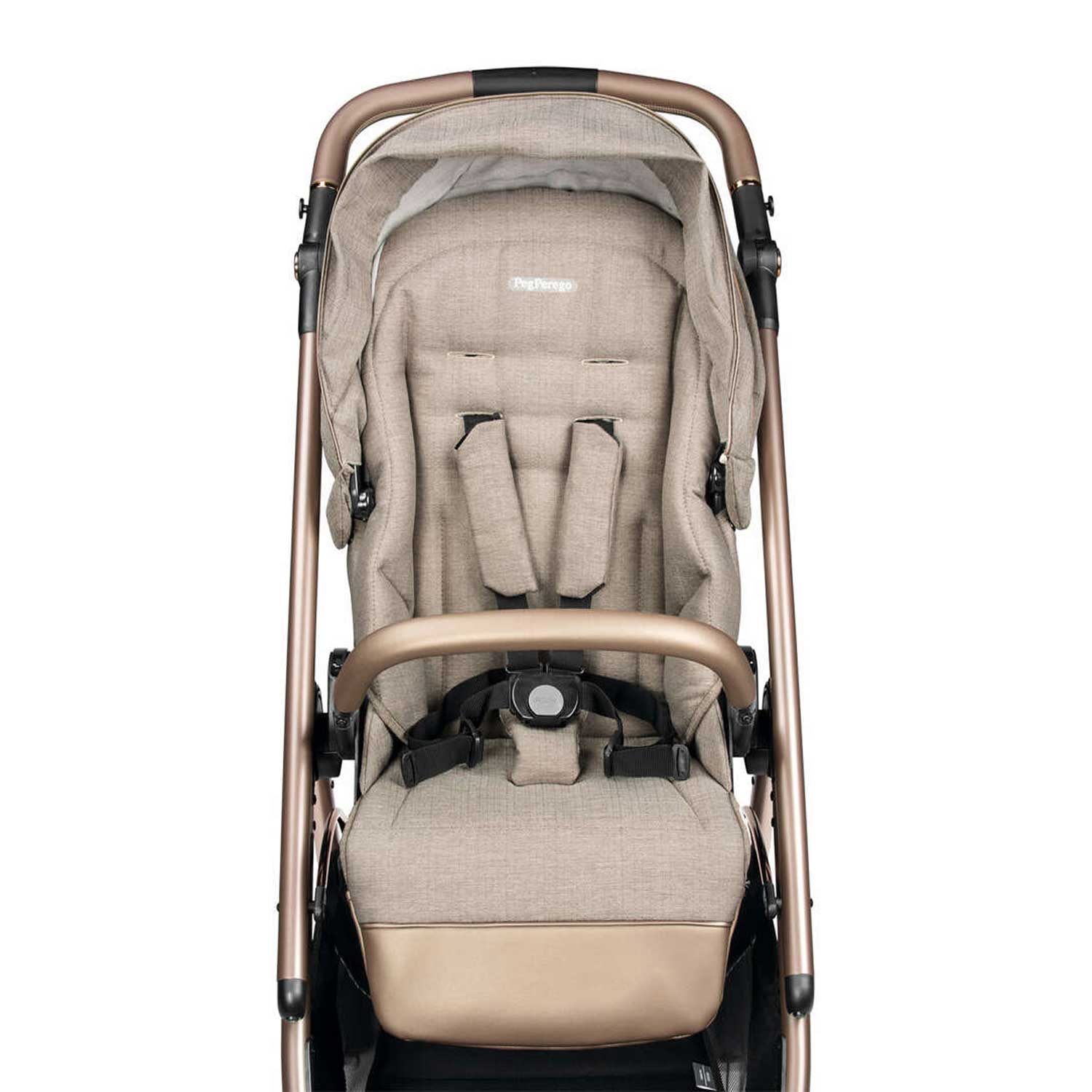 Comfort e funzionalità garantiti con la seduta spaziosa, le cinture di sicurezza a 5 punti e il frontalino apri-chiudi in ecopelle.