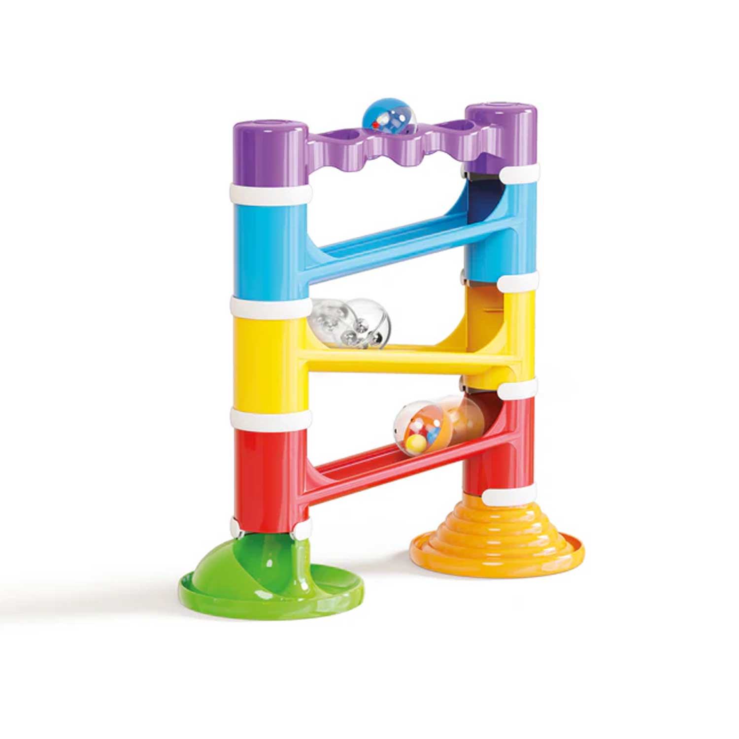 Divertente pista mozzafiato con 3 grandi biglie sonore. Spingi le biglie con la mano, sarà un vero divertimento vederle e sentire il loro suono mentre rotolano giù dalla torre.