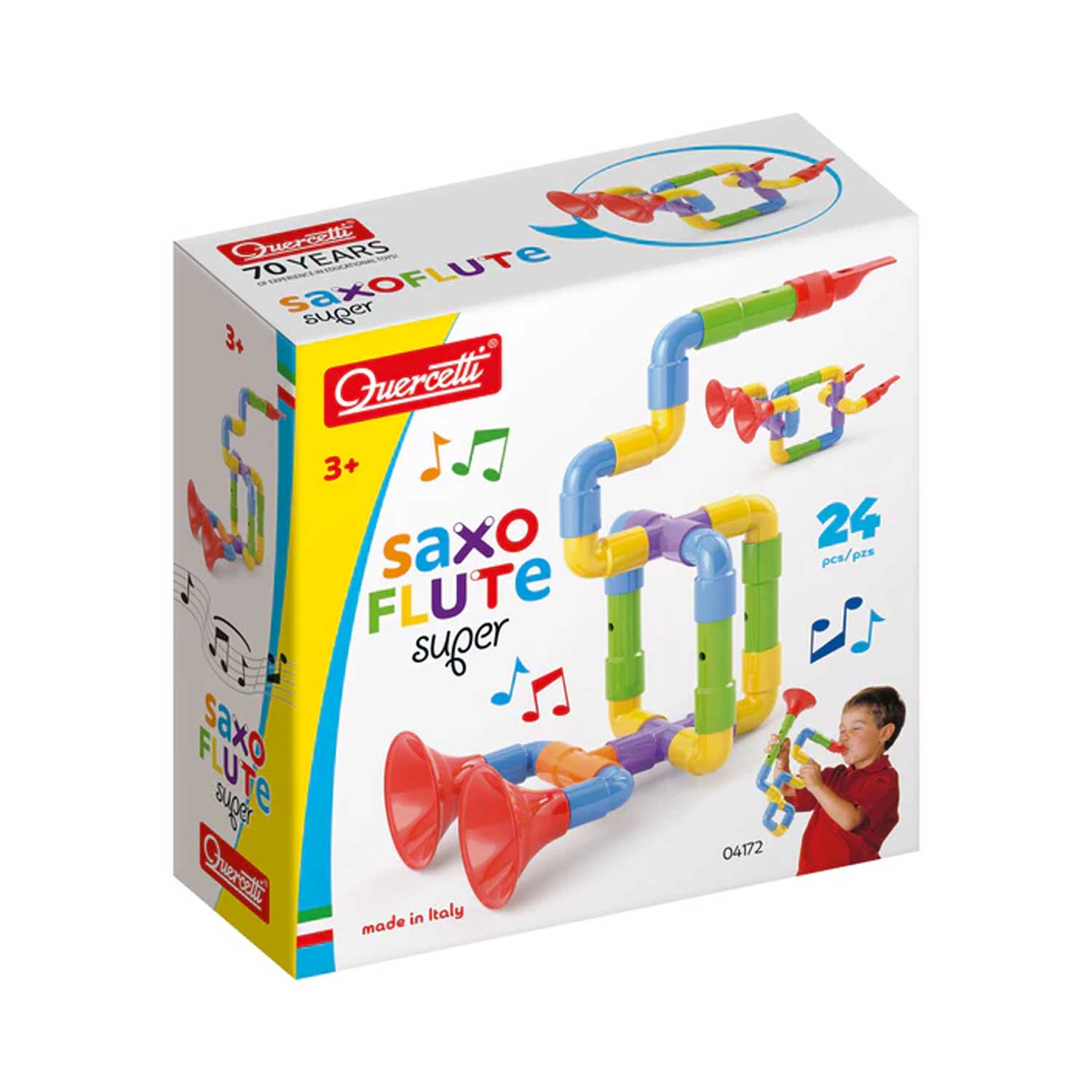 Con Saxoflute Super si costruiscono fantastici strumenti musicali pronti per essere suonati e subito da amare. Incastrando i pezzi tubolari puoi creare qualsiasi tipo di strumento che la fantasia ti suggerisce o imitare quelli veri: trombe, flauti, sassofoni... tutto produrrà incantevole musica non appena li suonerai come veri strumenti musicali. Tutti i pezzi sono infrangibili e assicurano molte ore di gioco in totale sicurezza.