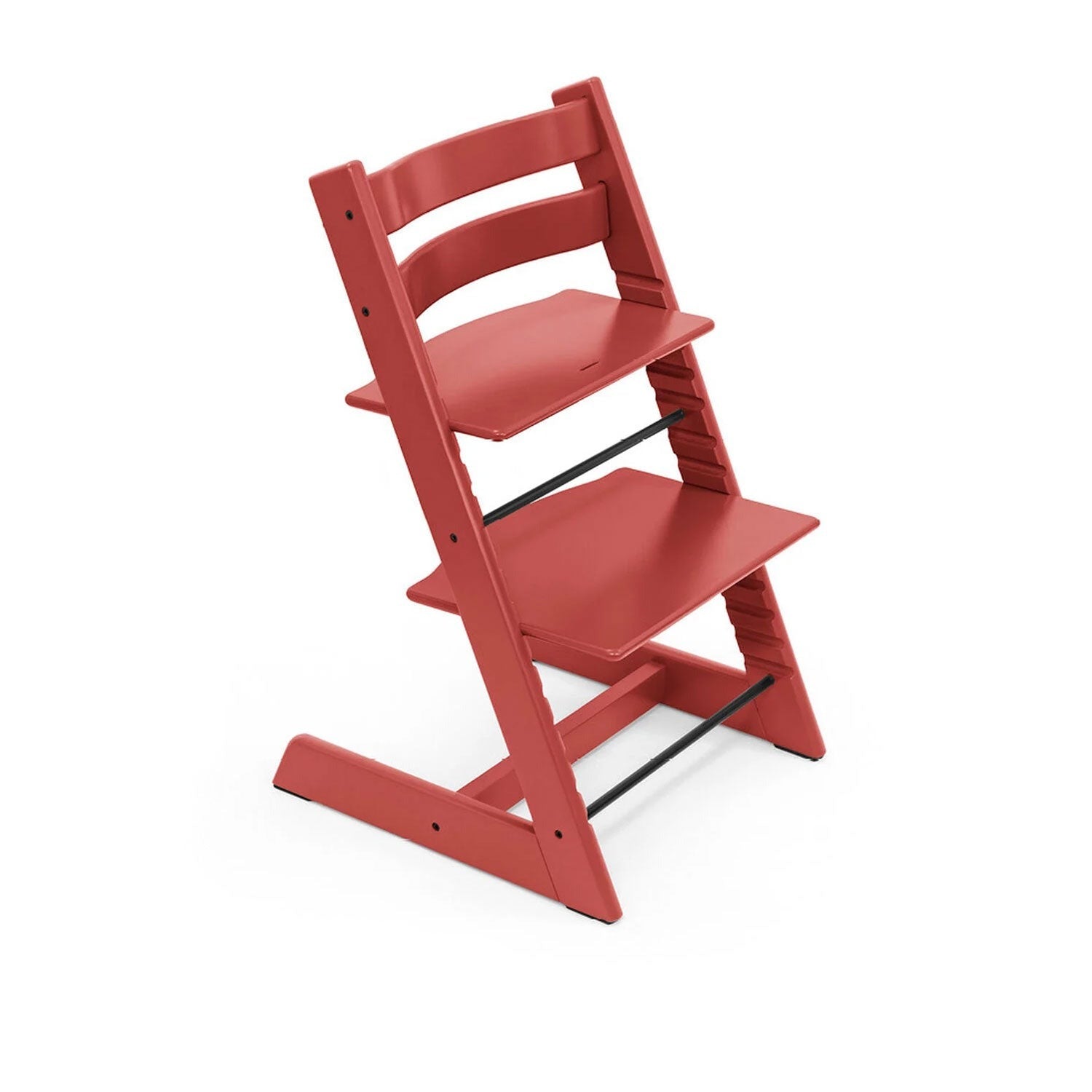 TRIPP TRAPP, thanks to the independent adjustments of the footrest, seat and backrest, ensures correct posture of the neck, shoulders and back and adapts to children of all heights, from birth to adulthood.