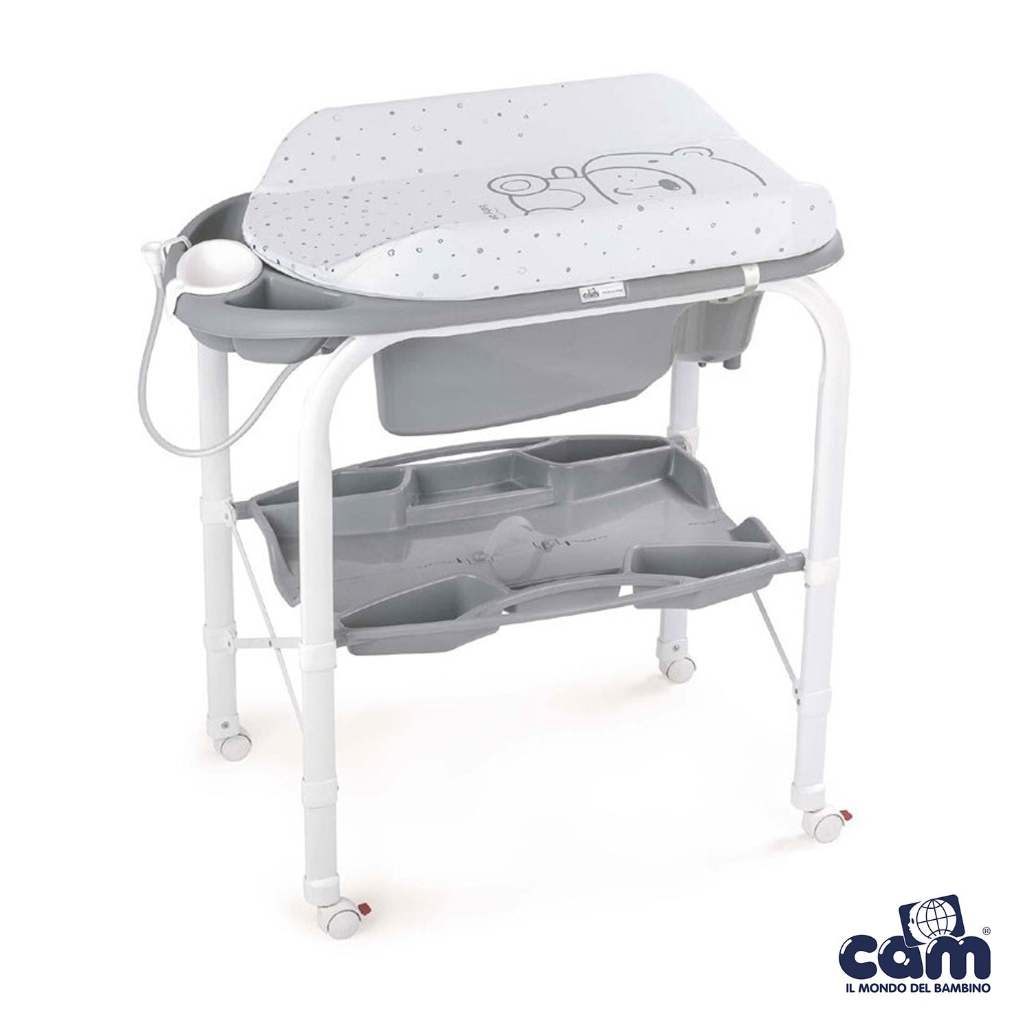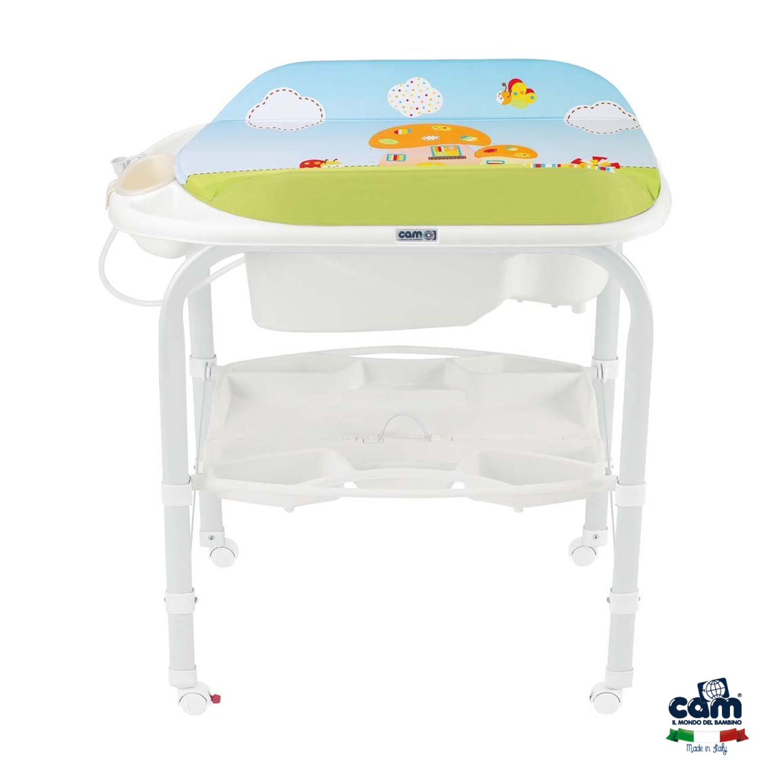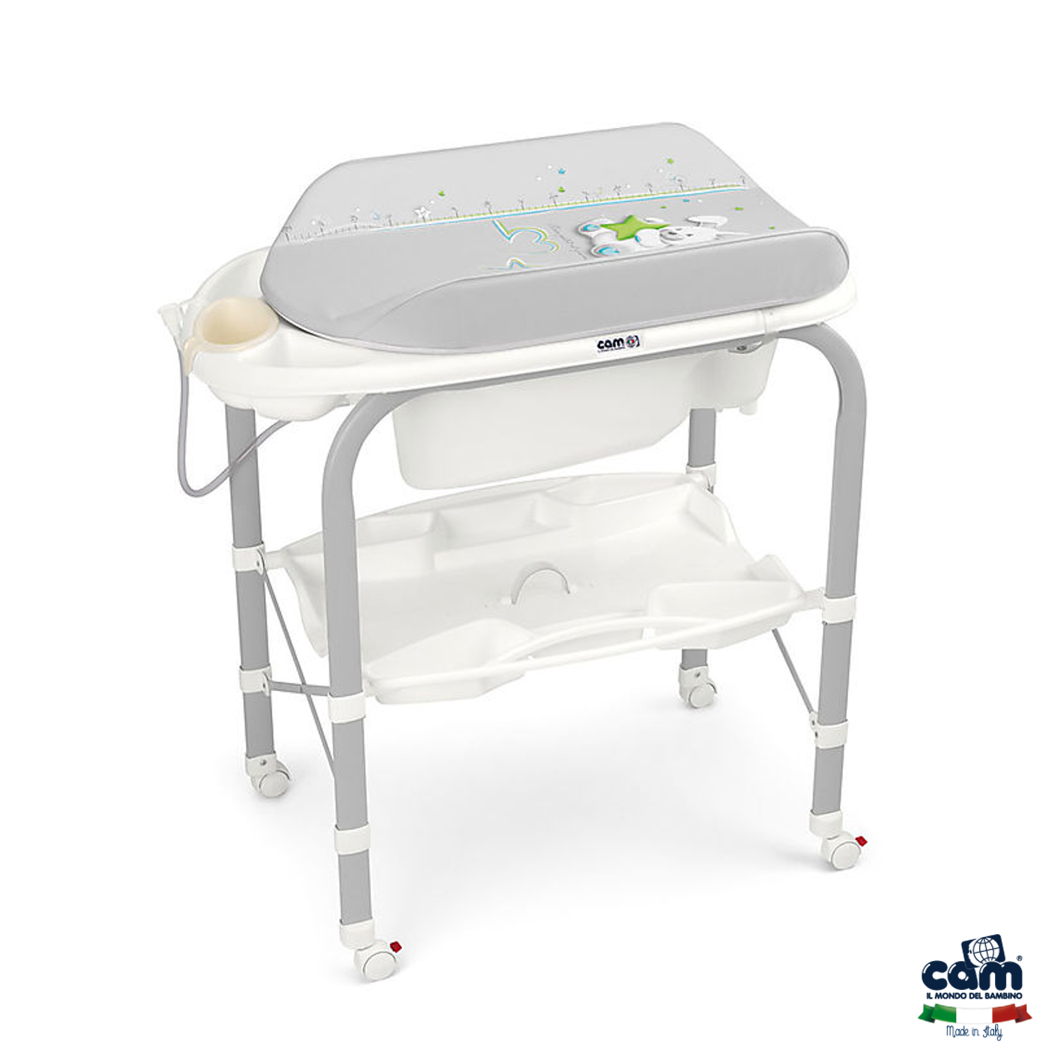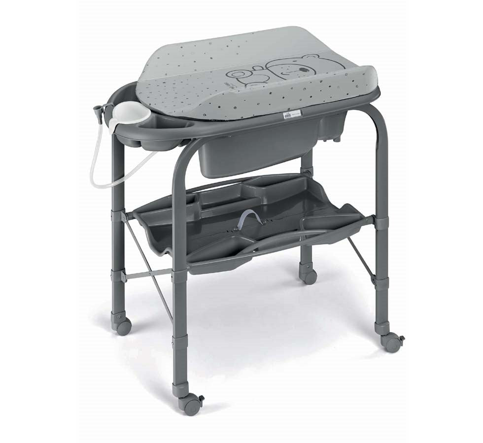 - Morbido fasciatoio con sistema di anti-ribaltamento, include vaschetta Baby Bagno con 2 sedute anatomiche e antiscivolo (una inclinata per bimbi da 0 a 6 mesi e una seduta con braccioli per bimbi da 6 a 12 mesi)