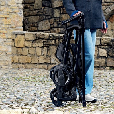 - Chiusura a ombrello compatta con la seduta in entrambe le posizioni di marcia