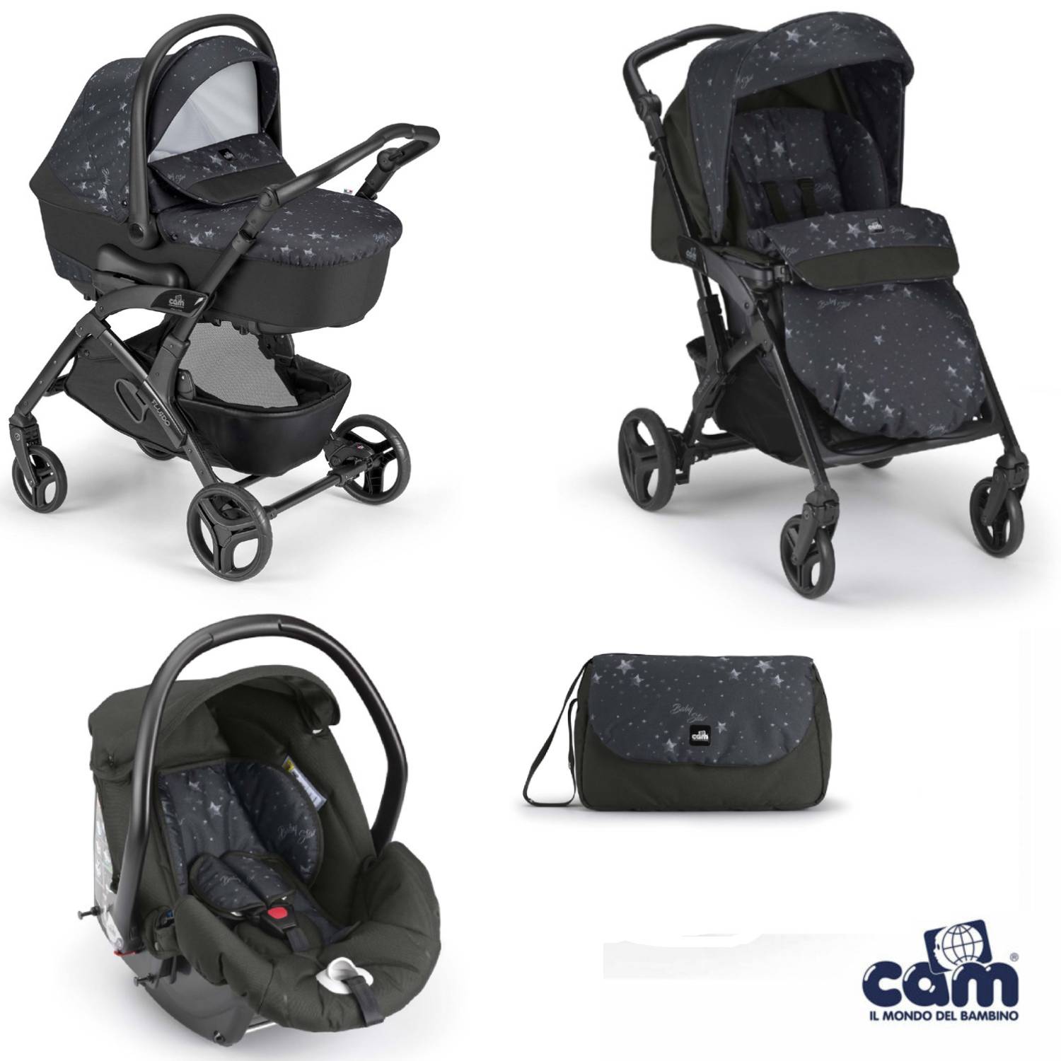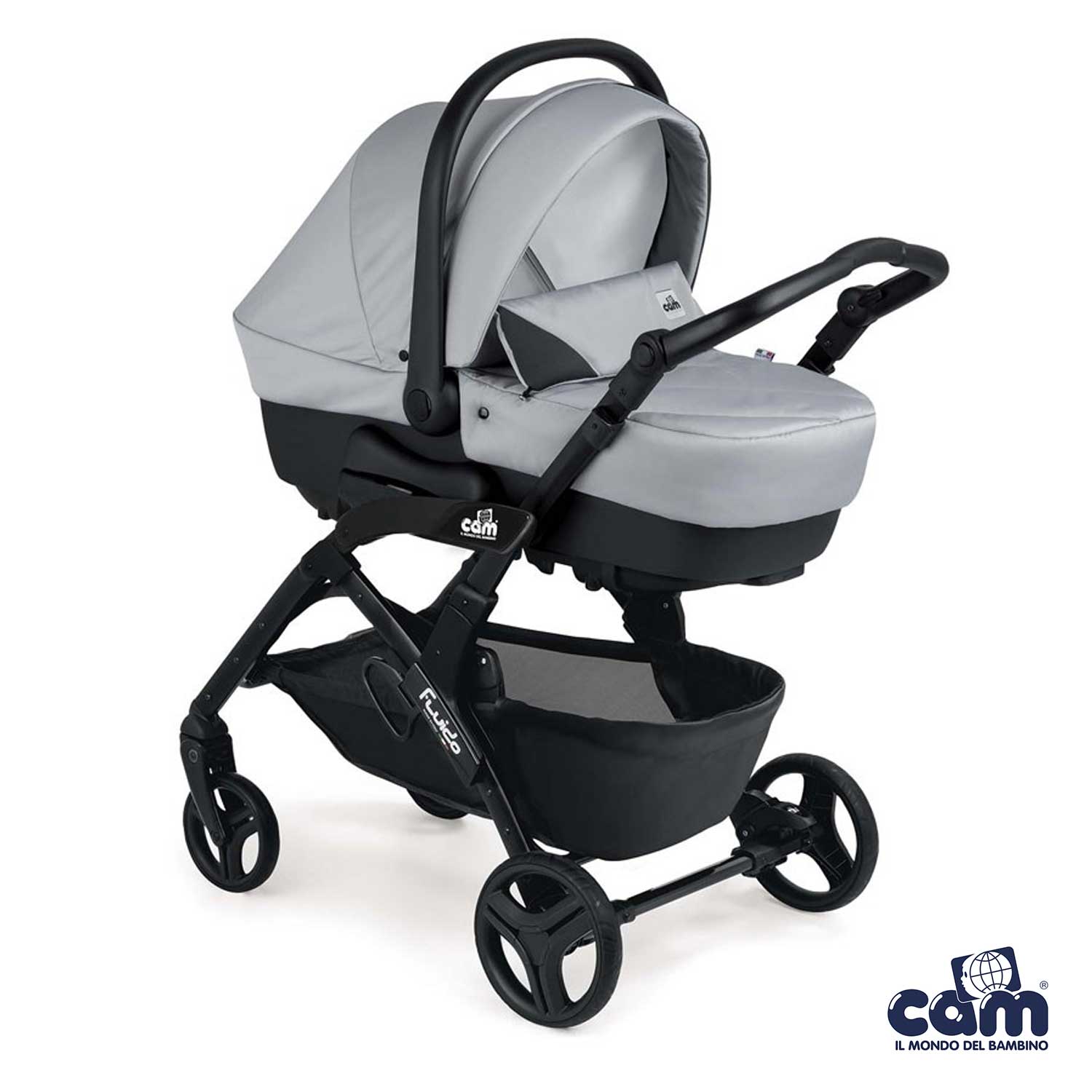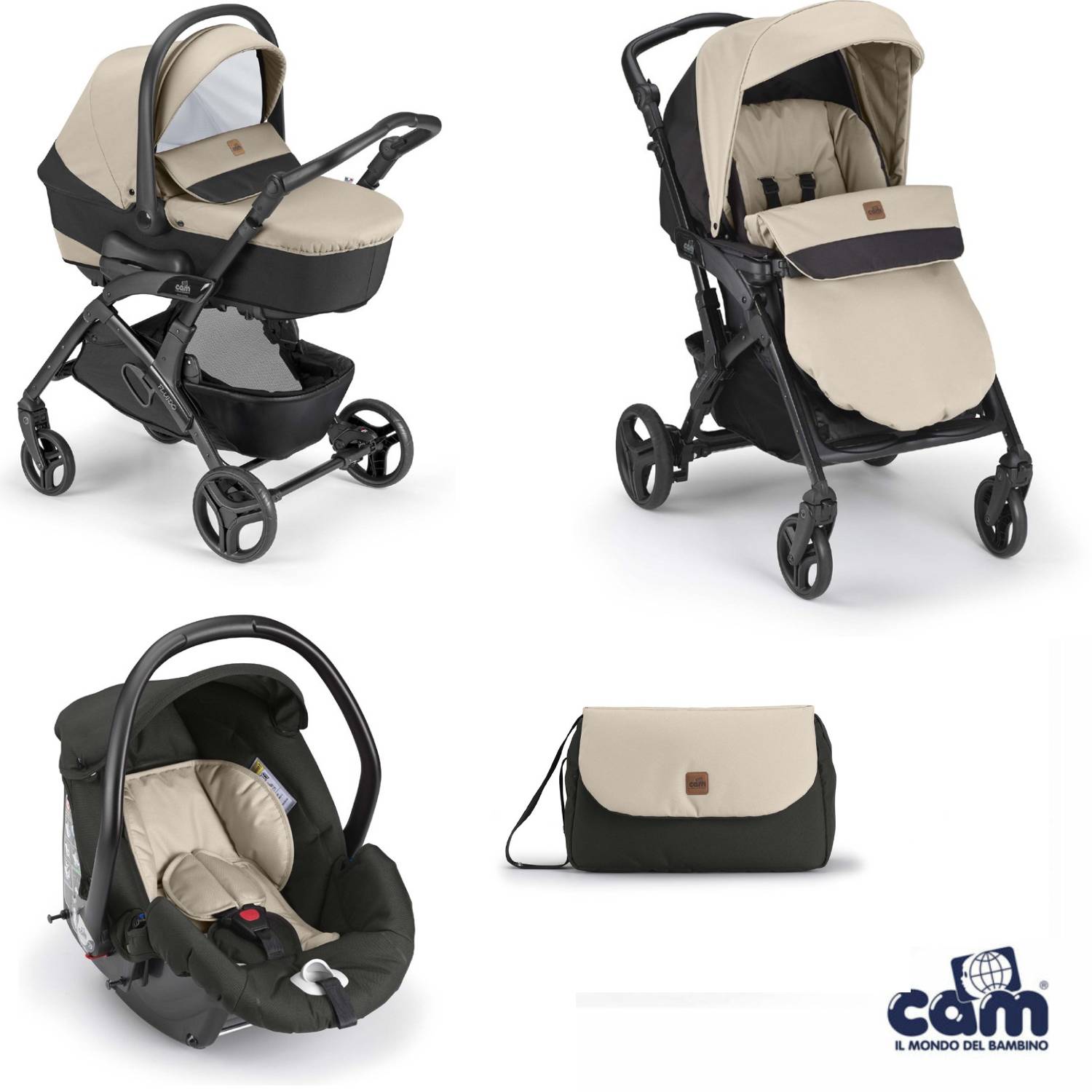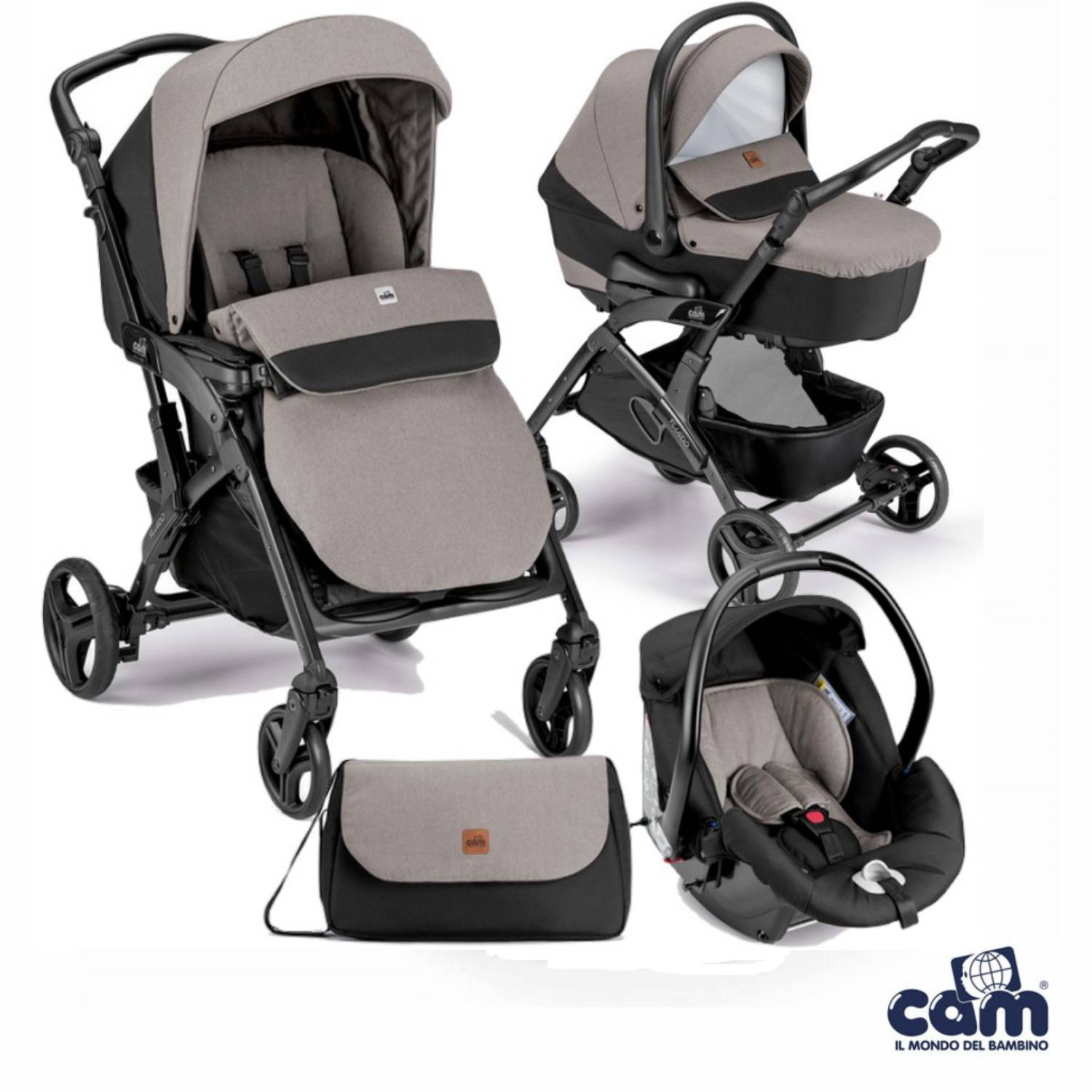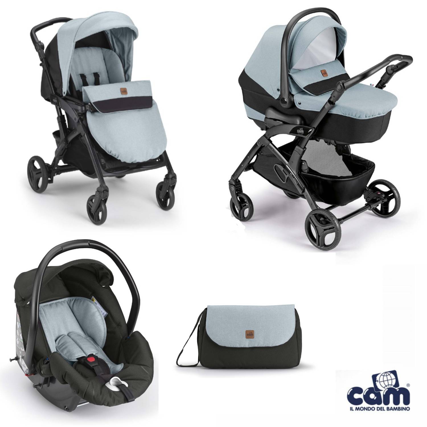 Cosa ricevi: telaio, passeggino, carrozzina con materassino, seggiolino auto, capottina parasole, coprigambe, cestino portaoggetti, borsa (senza fasciatoio).
