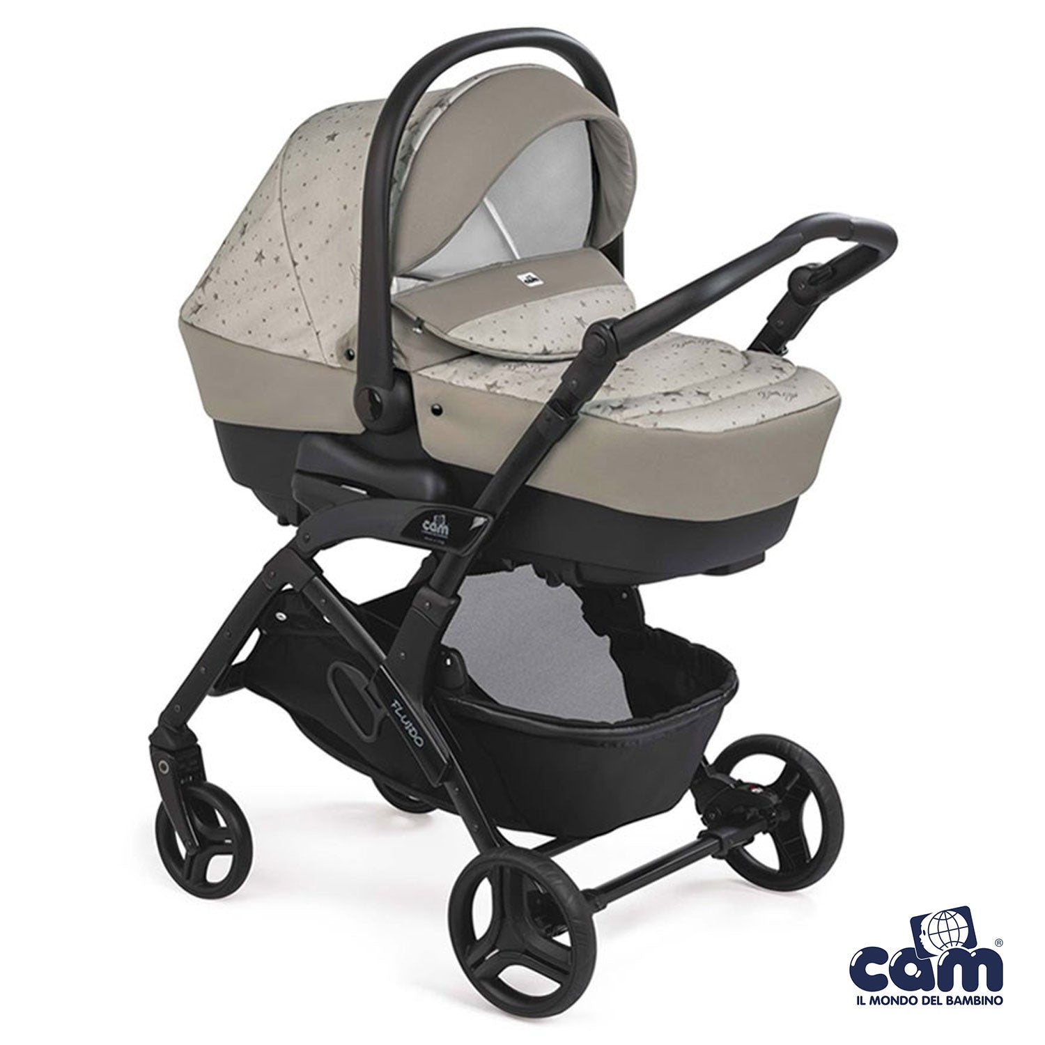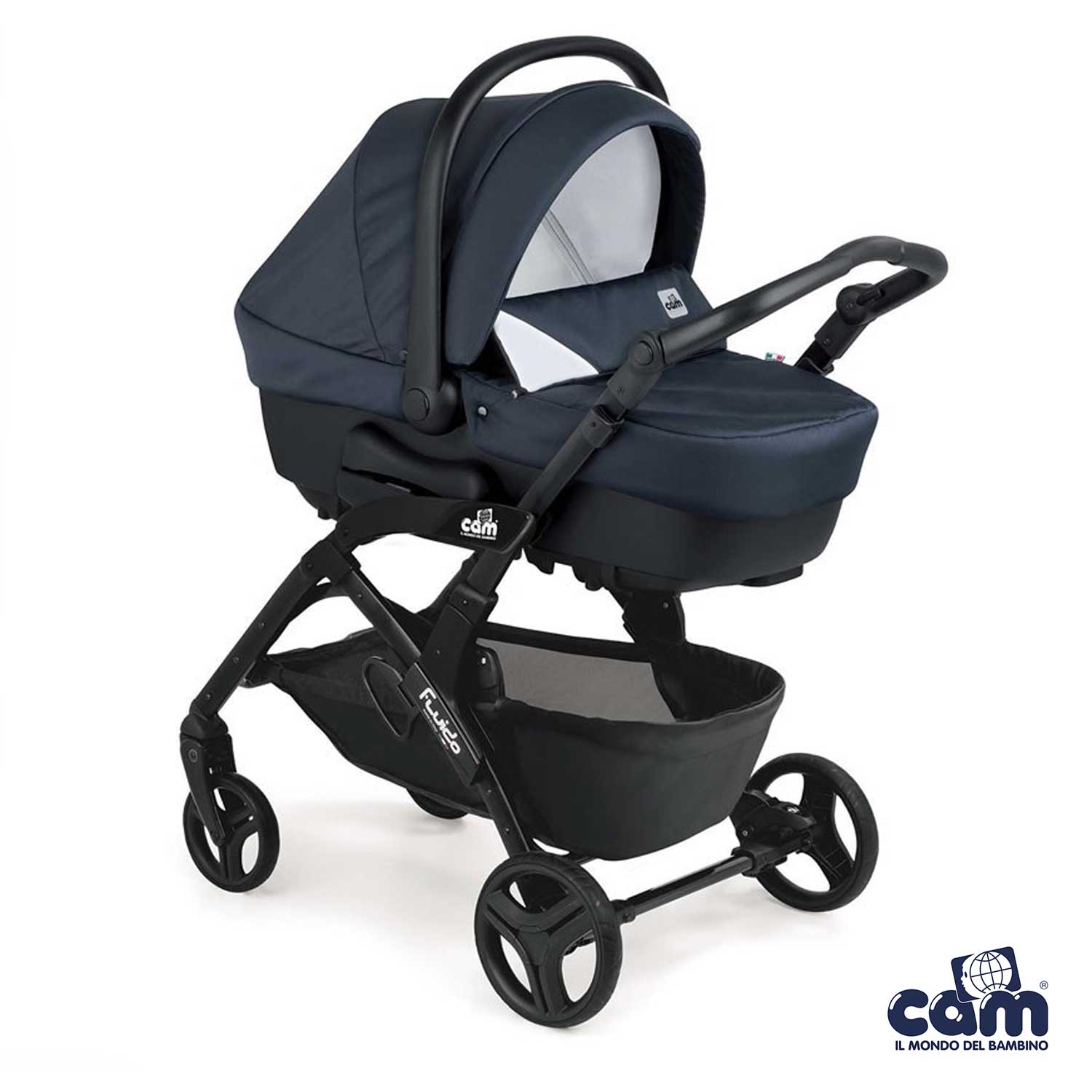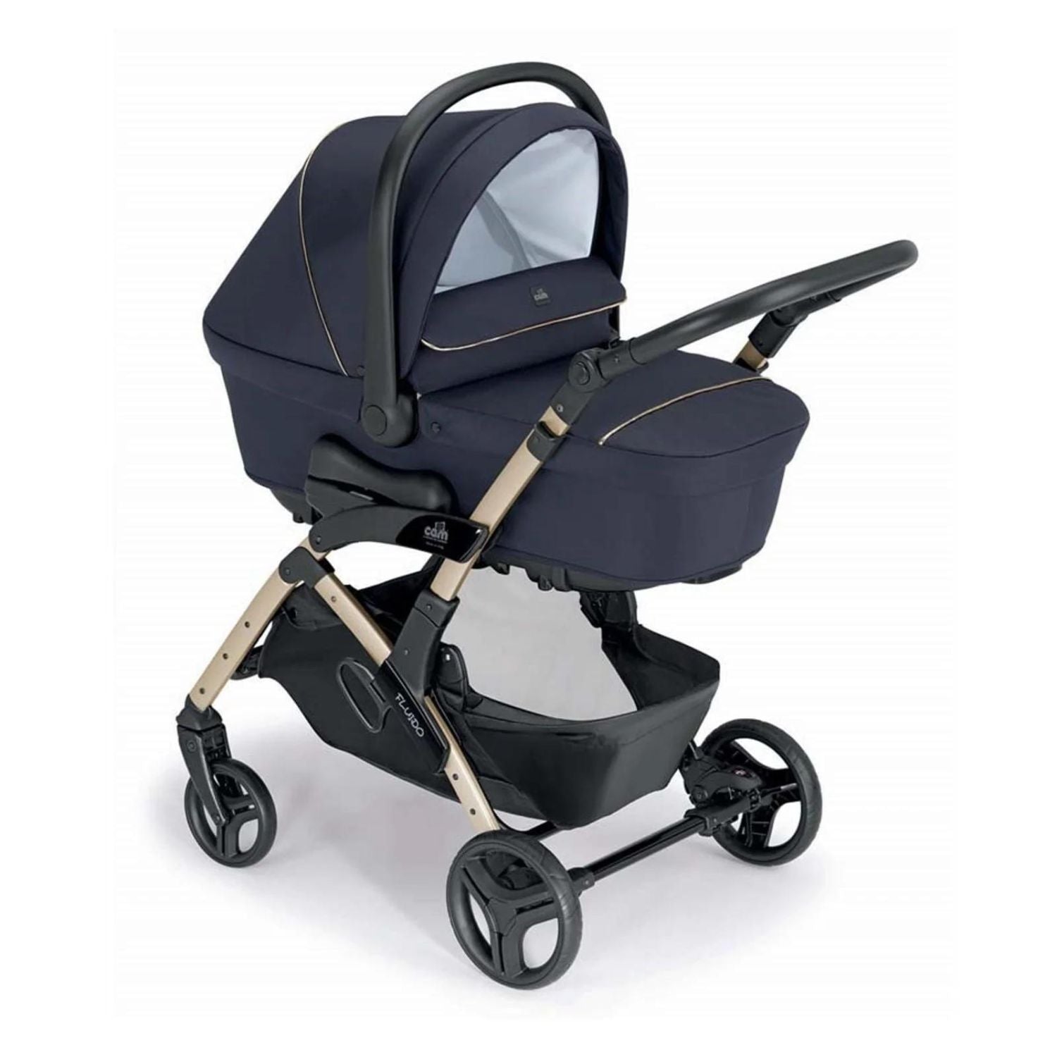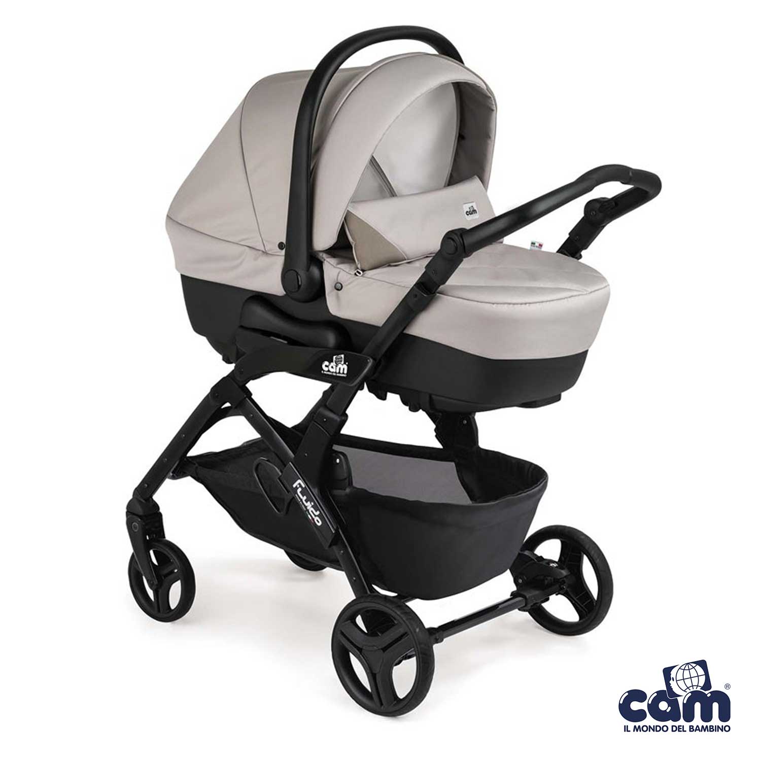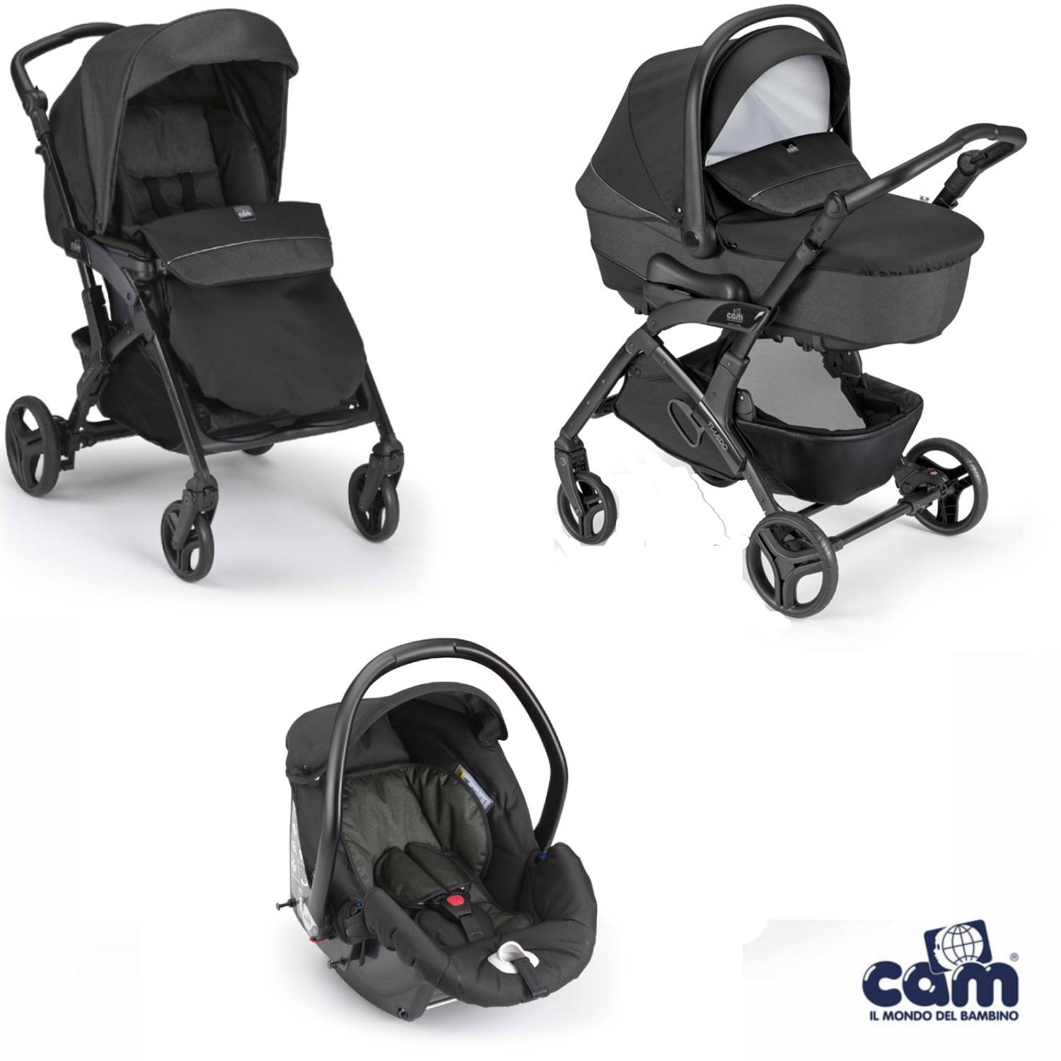 Cosa ricevi: telaio, passeggino, carrozzina con materassino, seggiolino auto, capottina parasole, coprigambe, cestino portaoggetti, borsa (senza fasciatoio).