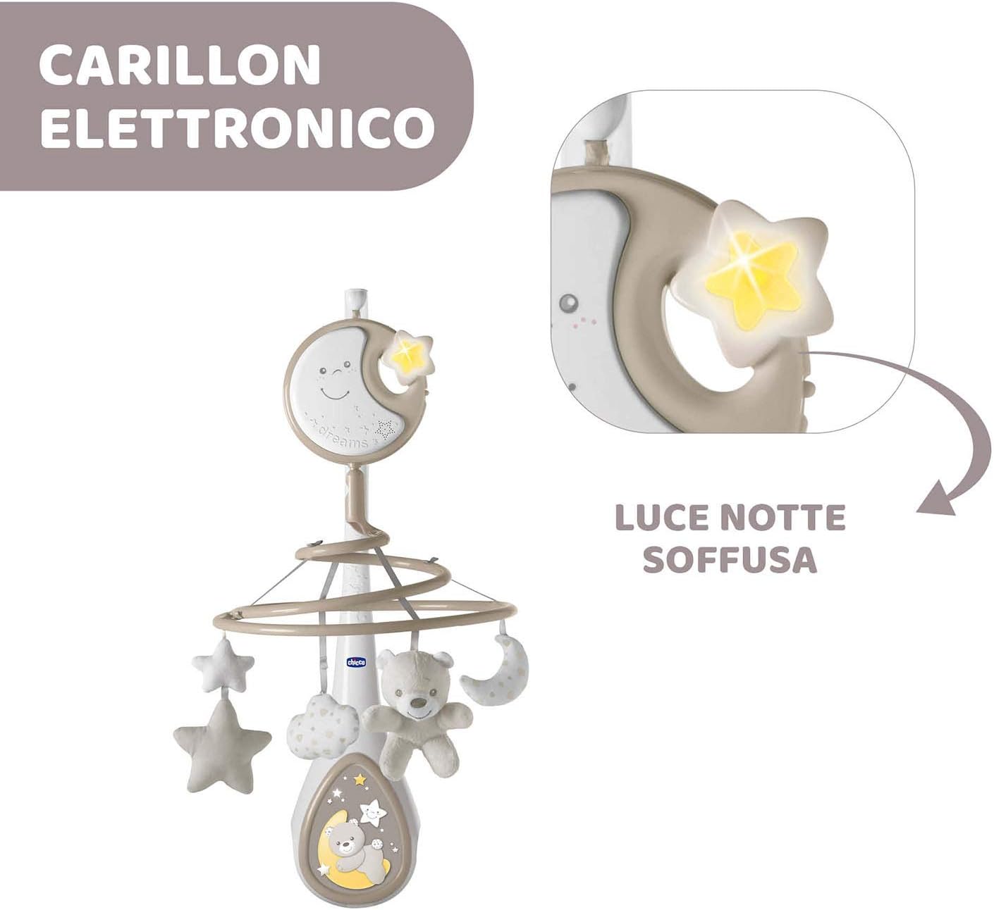 Next2Dreams di Chicco First Dreams è la prima giostrina mobile per lettino appositamente progettata per adattarsi alla culla Next2Me e alla maggior parte dei letti in legno.