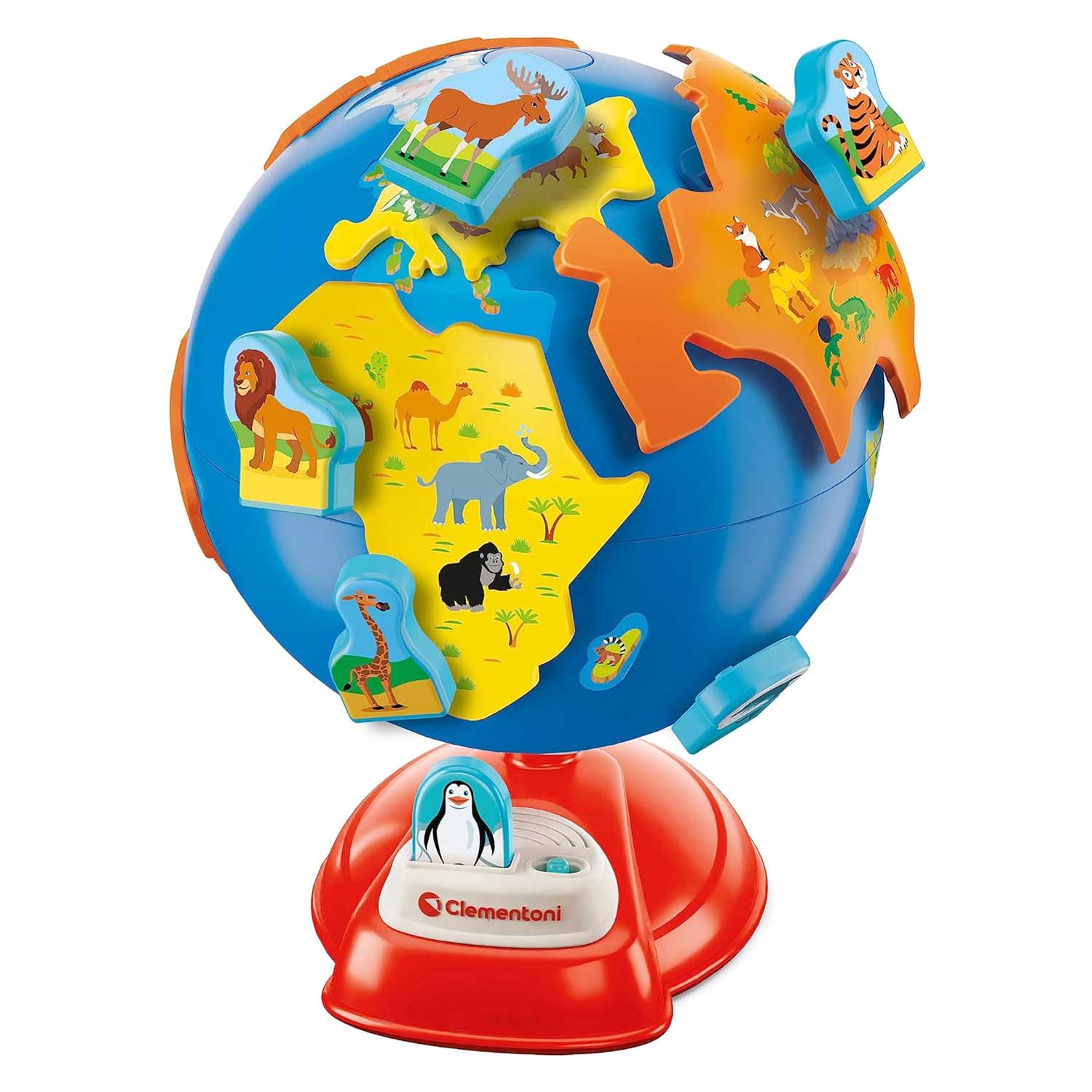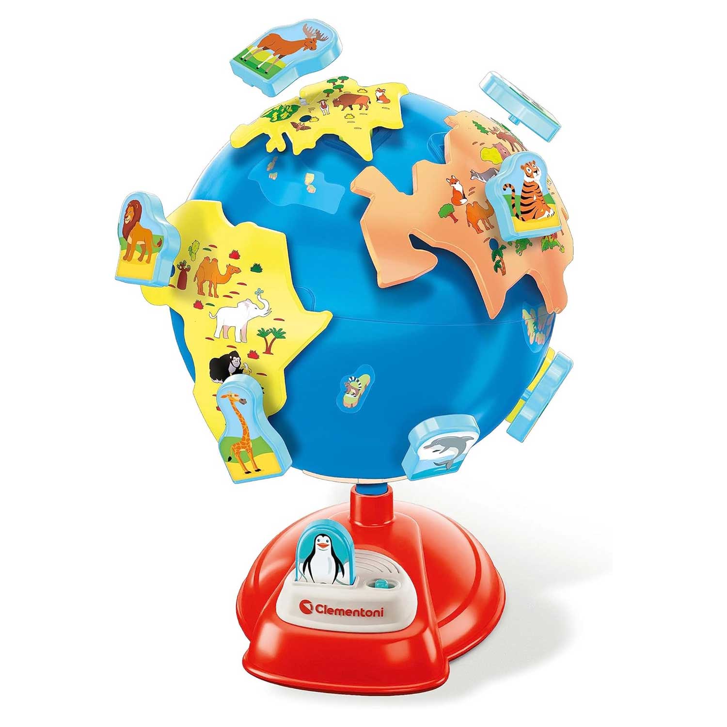 - Inserendo gli animali sagomati nel modulo elettronico alla base del globo il bambino potrà scoprire tante informazioni e curiosità sugli animali e i loro habitat.