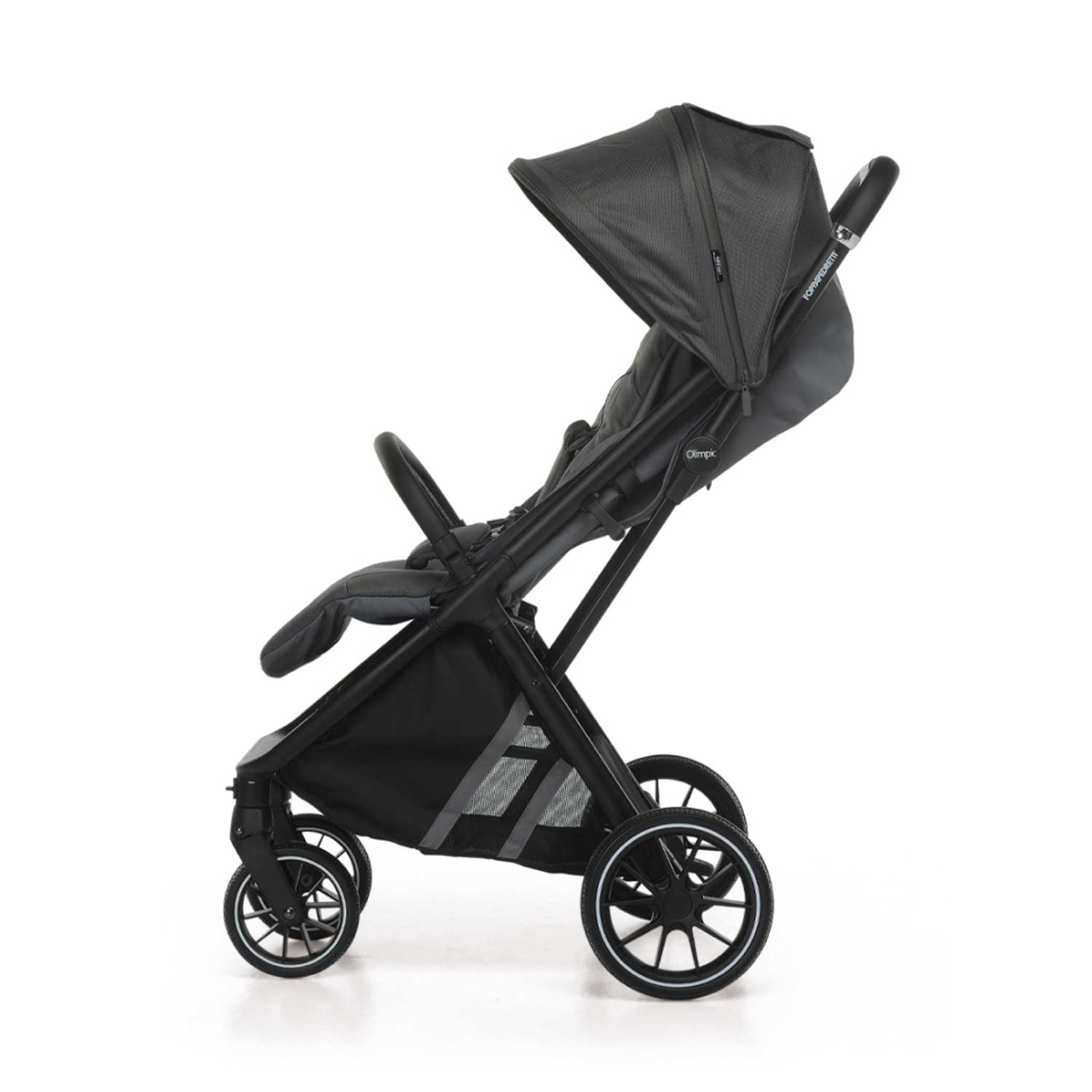 Il passeggino Olimpic di Foppapedretti è compatto e molto comodo: accompagna la crescita del bambino dalla nascita fino a 22 kg.
