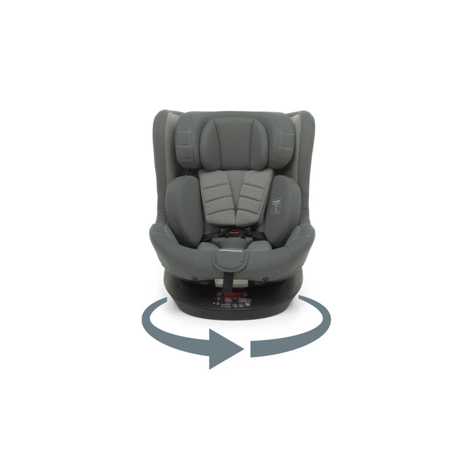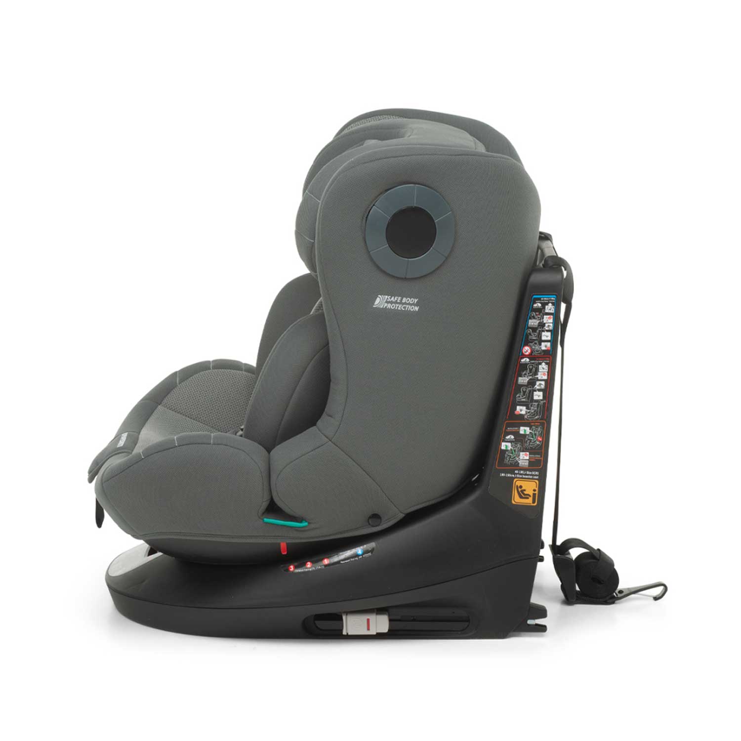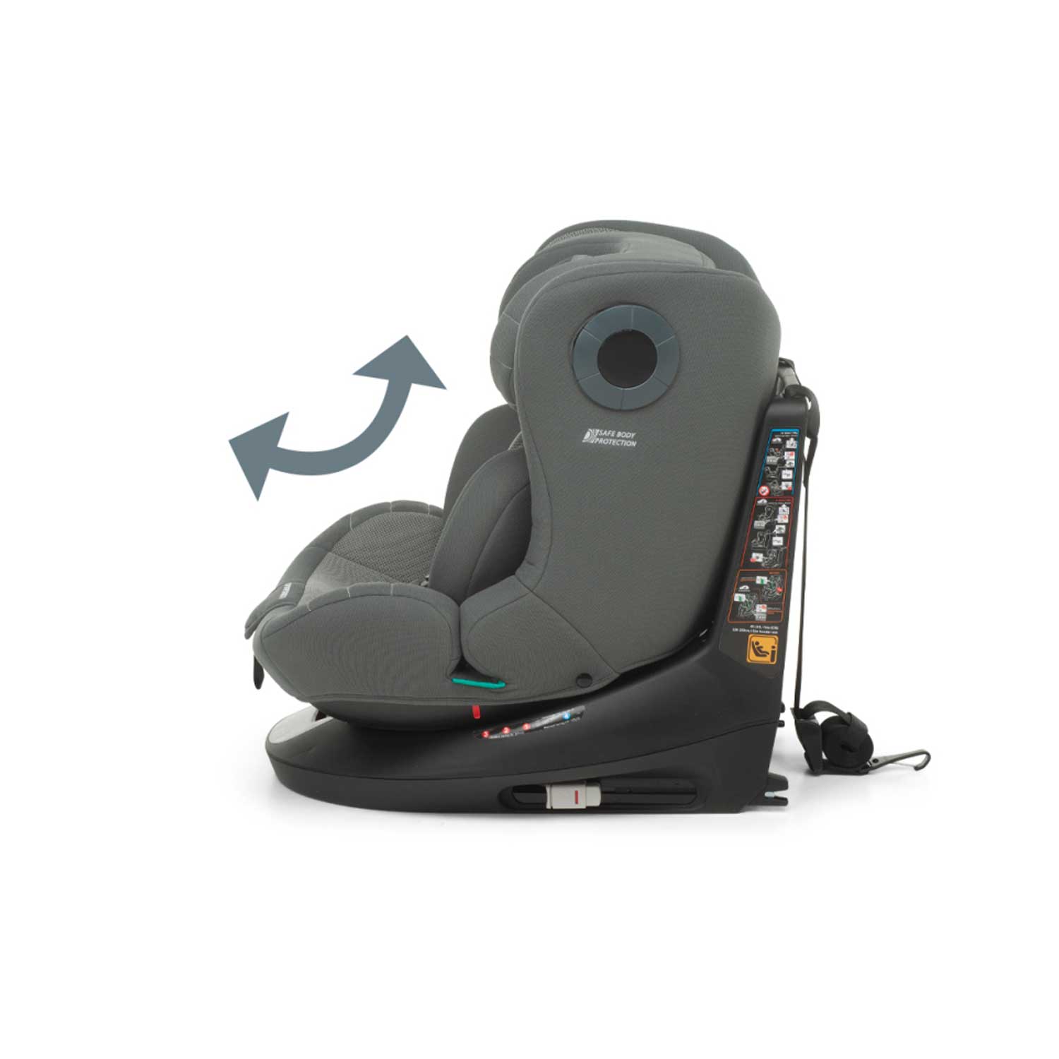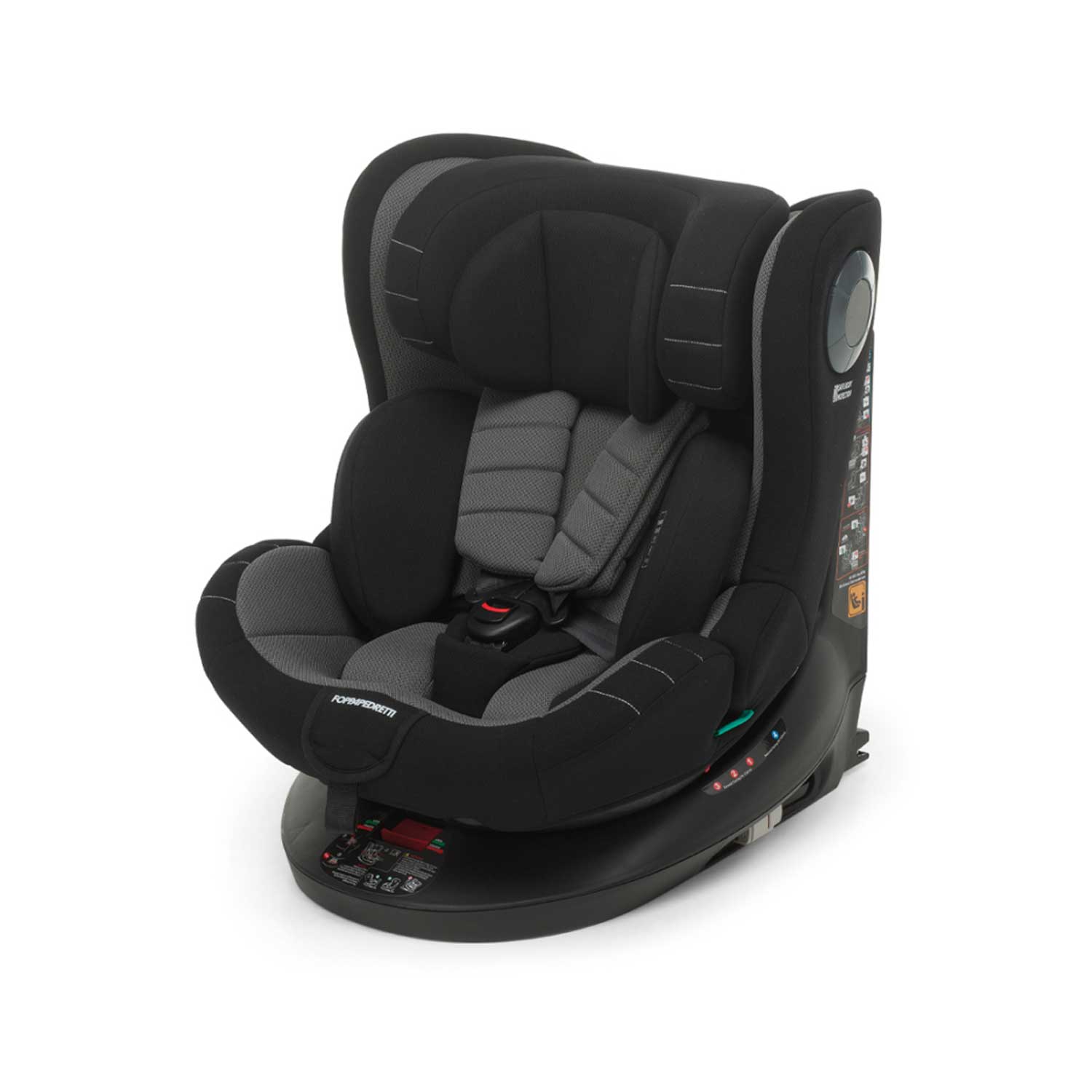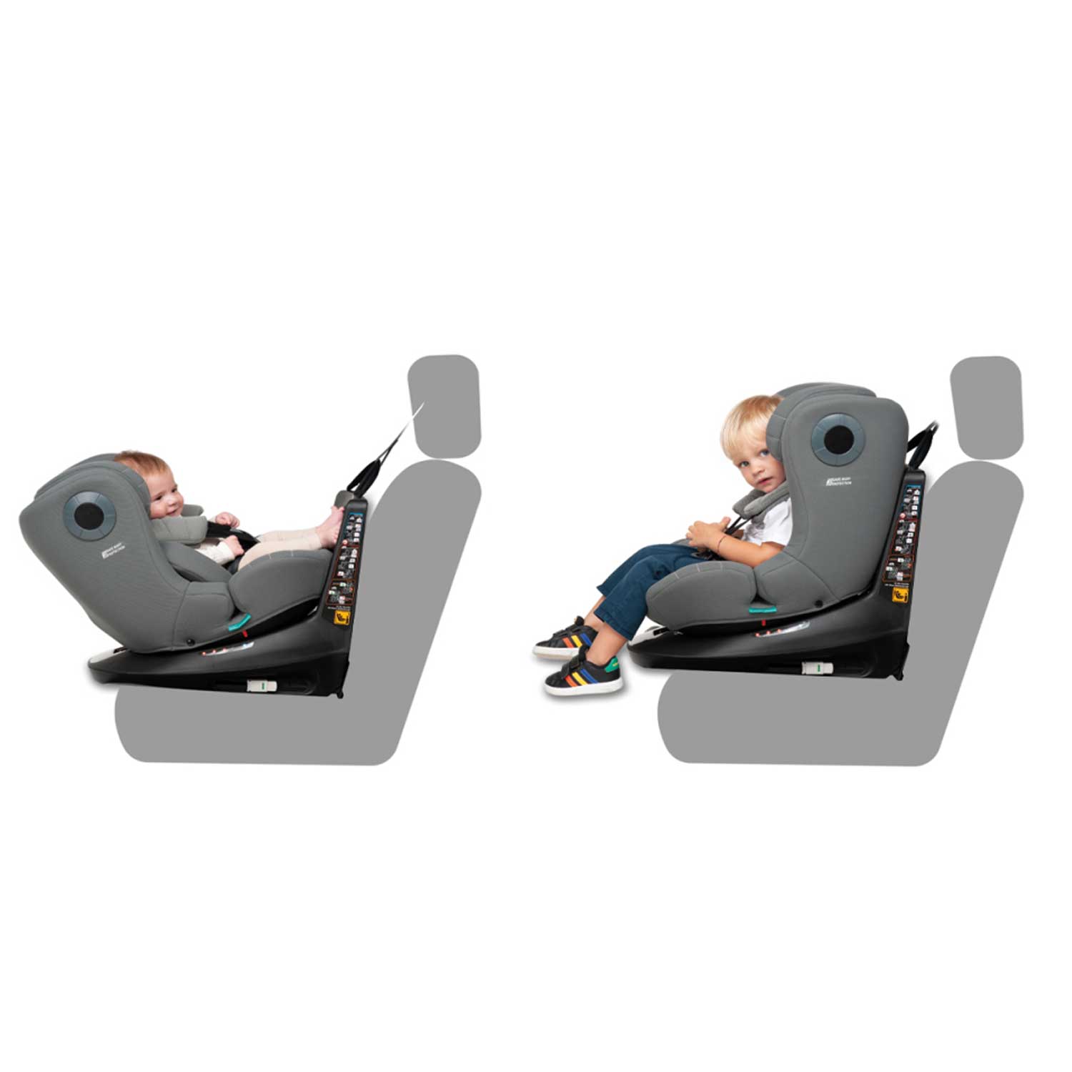 - La seduta girevole con seduta “Easy positioning” a 360 gradi può essere ruotata verso la portiera dell’auto, per garantire il massimo comfort anche ai genitori nel posizionare il bambino.