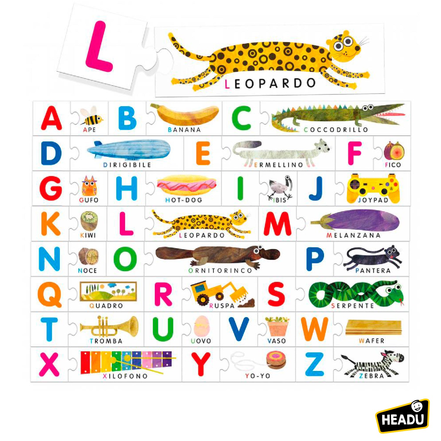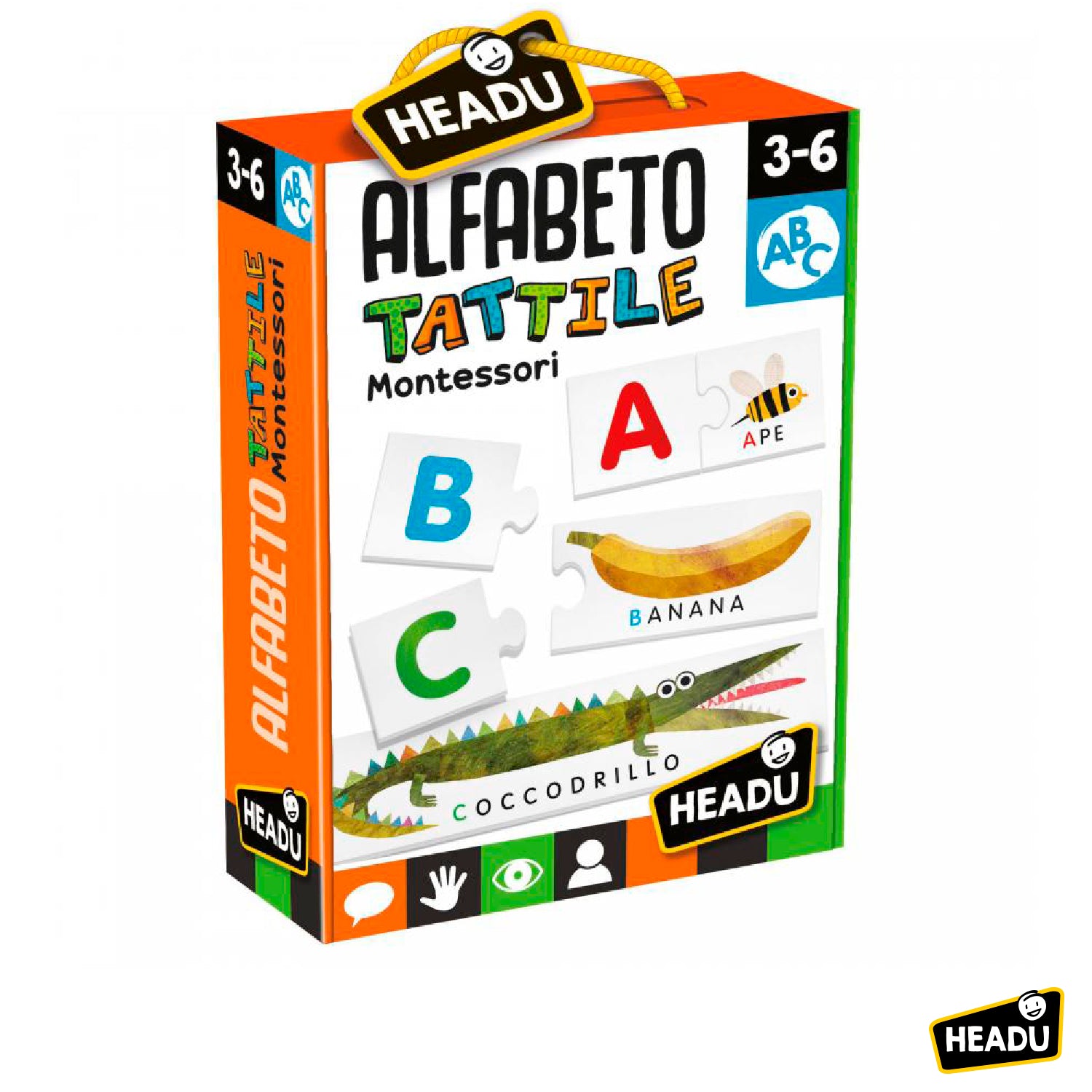 Il bambino tocca le lettere smerigliate, associa i grafemi alle parole e, grazie agli appositi tasselli autocorrettivi, impara l’alfabeto e distingue parole più lunghe e più corte.
