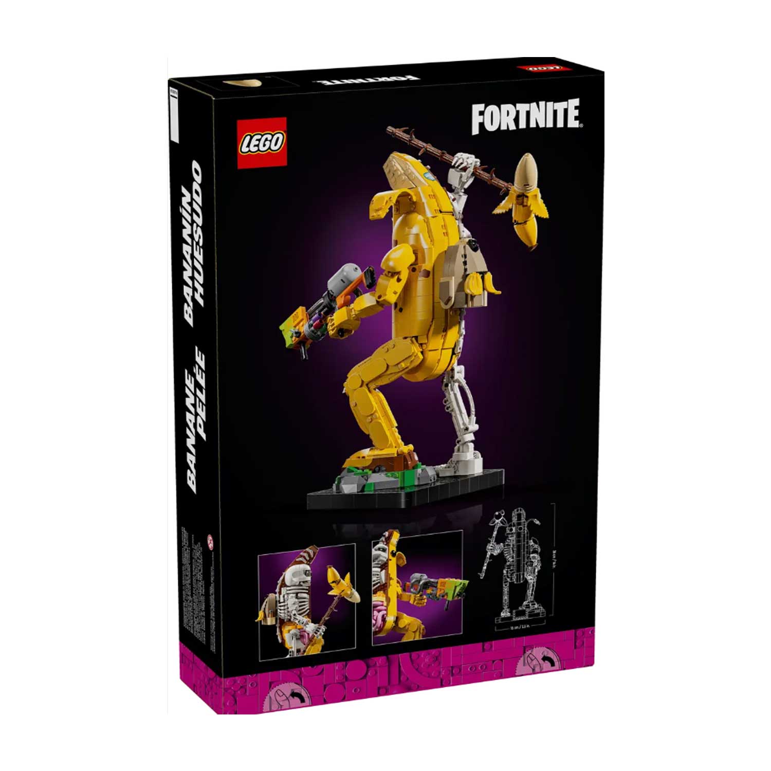 I fan di Fortnite possono immergersi in un’avventura fuori dallo schermo mentre assemblano la versione in mattoncini di Bananita sbucciata, che è per metà banana e per metà scheletro. Si divertiranno a scoprire le braccia e i polsi mobili del giocattolo, nonché i suoi fantastici accessori, che includono un piccone, un lancia-vernice e il Back Bling dello zaino delle banane.