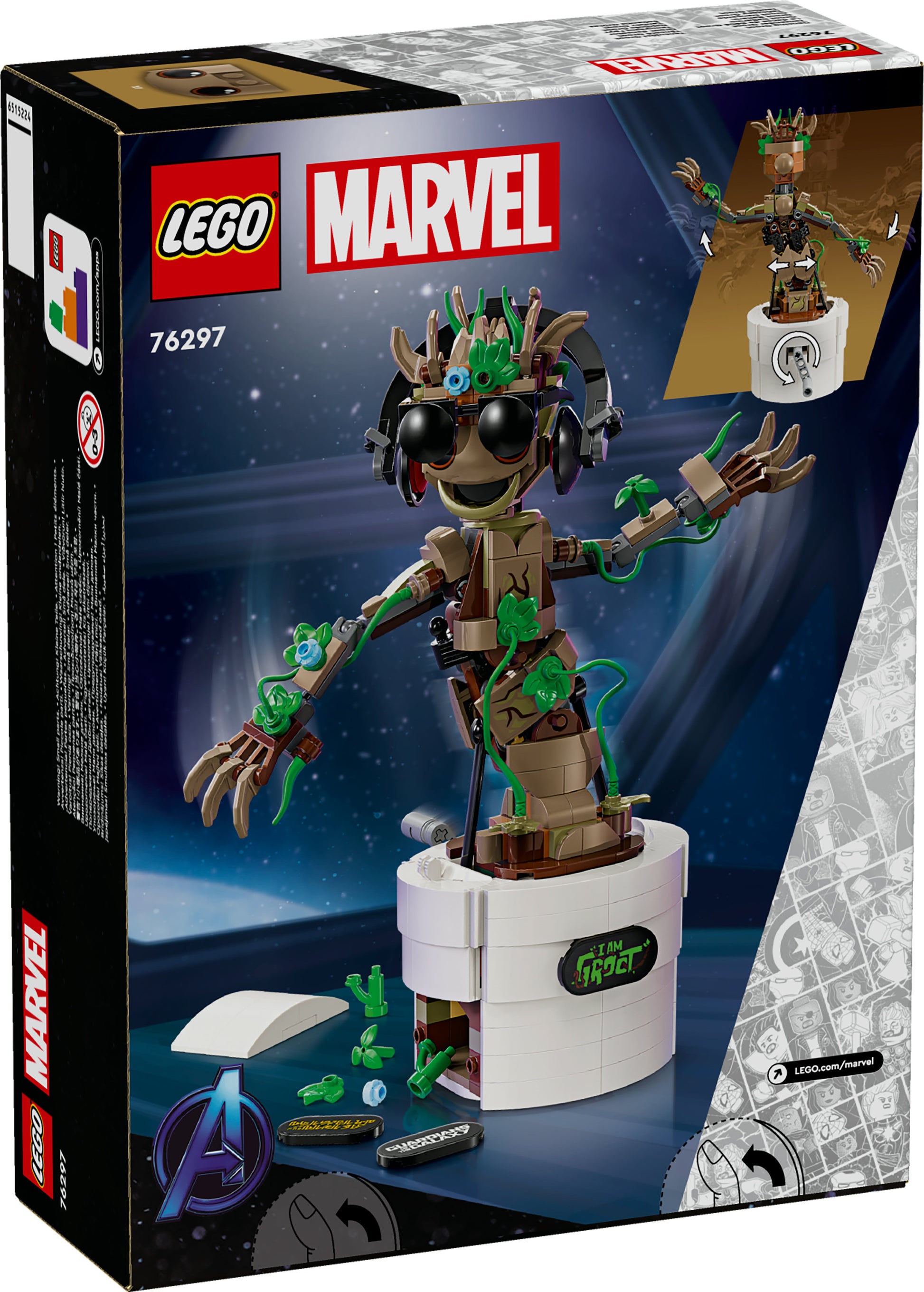 Groot ballerino LEGO Marvel (76297) è un giocattolo costruibile dei Guardiani della Galassia con una funzione di danza interattiva. È un regalo fantastico per i bambini dai 10 anni in su che sono fan del personaggio Groot della Marvel, dei supereroi e dei giocattoli LEGO costruibili.