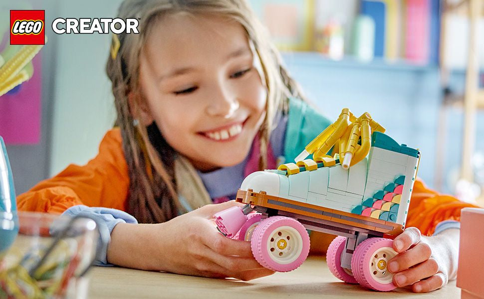 3 modelli retrò in 1 scatola – i bambini e le bambine dagli 8 anni in su possono costruire e ricostruire 3 diverse icone della cultura pop utilizzando gli stessi mattoncini con questo giocattolo Pattino a rotelle retrò LEGO® Creator