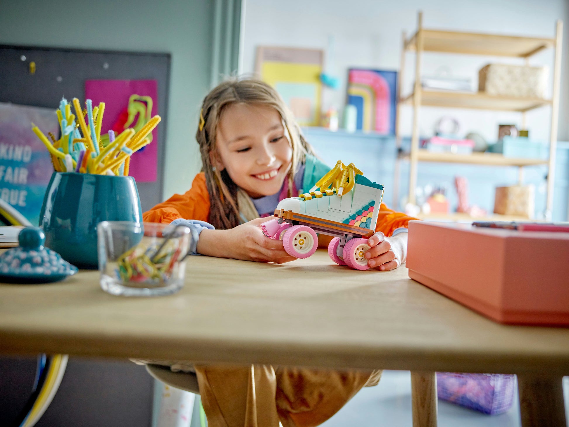 I bambini creativi dagli 8 anni in su possono tornare indietro nel tempo con questo colorato set costruibile Pattino a rotelle retrò LEGO® Creator (31148). Il set contiene un pattino a rotelle LEGO giocattolo con 4 ruote rosa mobili, freno rosa, spessi lacci gialli e pezzi colorati con cui i bambini possono decorare il tacco dello stivale, realizzando i propri design.