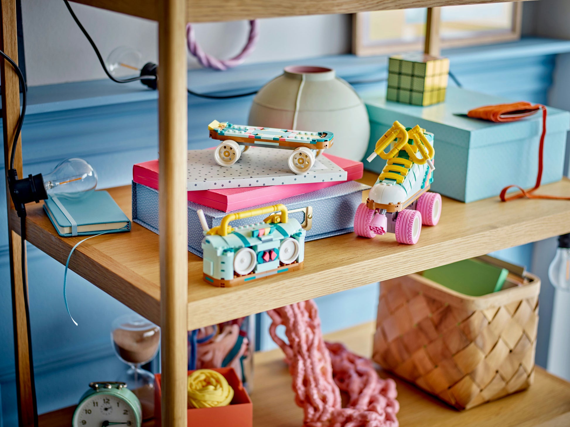 Infinite possibilità di gioco – i bambini possono inventare le proprie storie con 3 diversi modelli retrò: un pattino a rotelle, un mini skateboard e un ghetto blaster