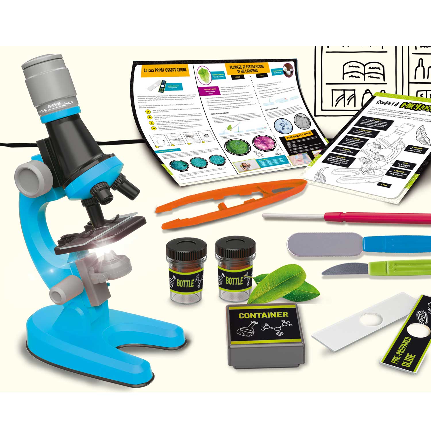 Un microscopio di alta qualità fino a 1200 ingrandimenti con tanti strumenti utili come pinzette, contenitori e vetrini porta campioni. Un kit perfetto per portare avanti le tue ricerche scientifiche e studiare il mondo che ti circonda!