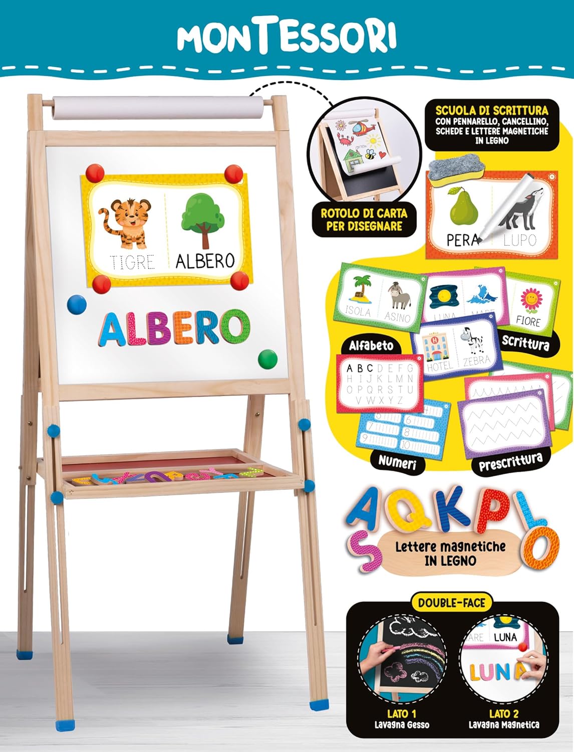 Lisciani - Montessori Lavagnona in Legno Cresce Con Te