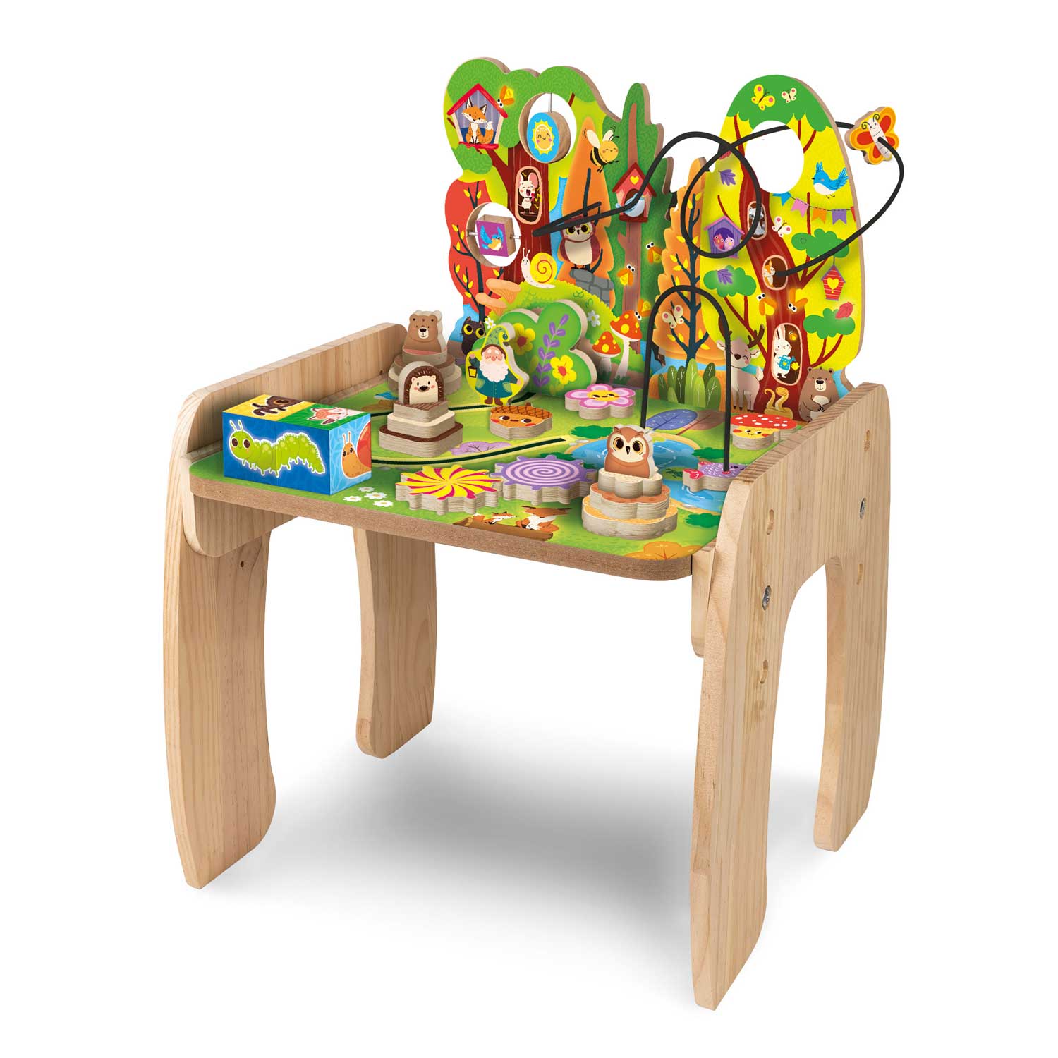 Un tavolo attività in legno non può mancare nella stanza di un bambino! Con tanti giochi manuali e incastri per bambini da un anno in su! Ci sono varie attività educative da fare: 3 animali impilabili e un labirinto, un sistema di ingranaggi a 2 ruote per la coordinazione, 2 cubi da incastrare per creare gli animali, forme girevoli, e elementi da muovere sulle piste. Inoltre, l’altezza del tavolo è regolabile per accompagnare il bambino durante la crescita