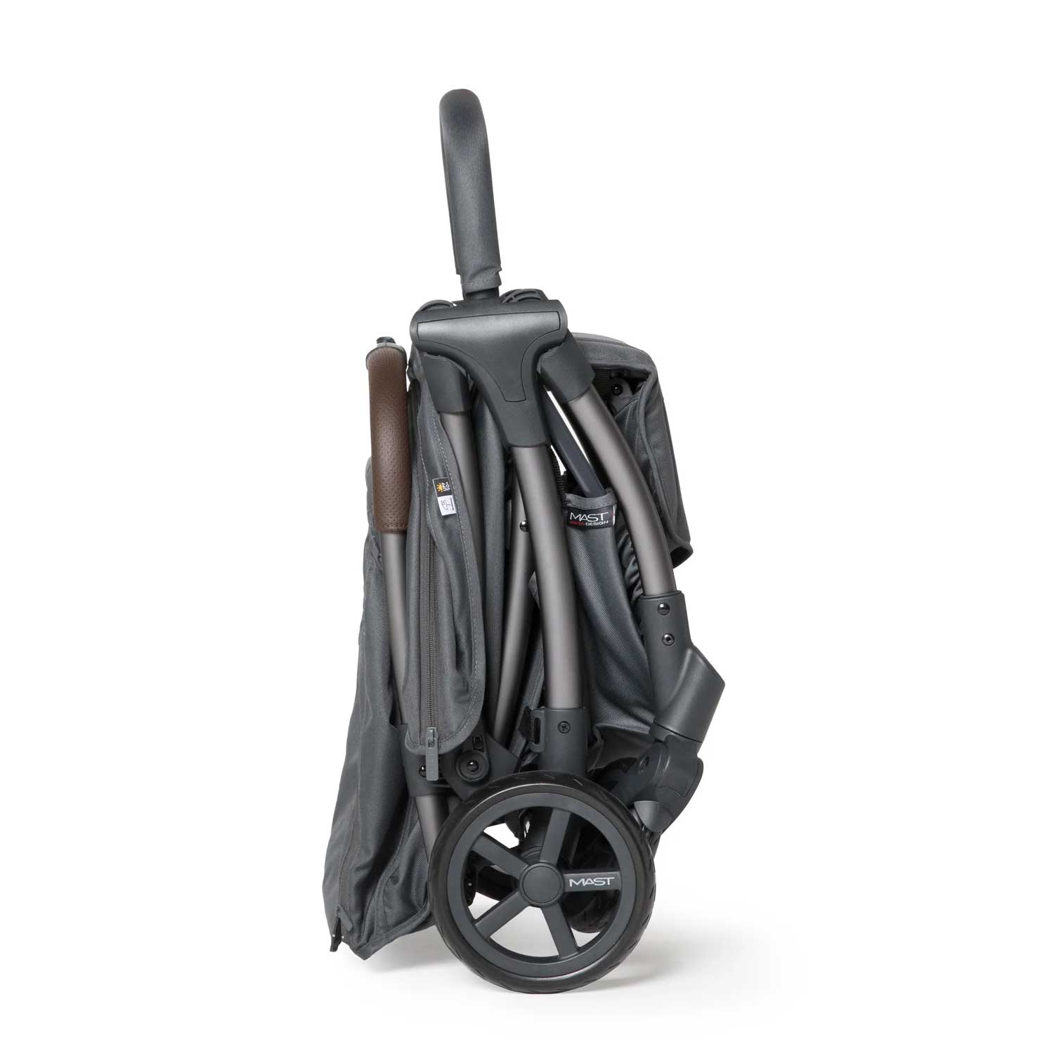 Il passeggino M.2 si apre e si chiude facilmente con una sola mano e rimane in piedi quando chiuso.