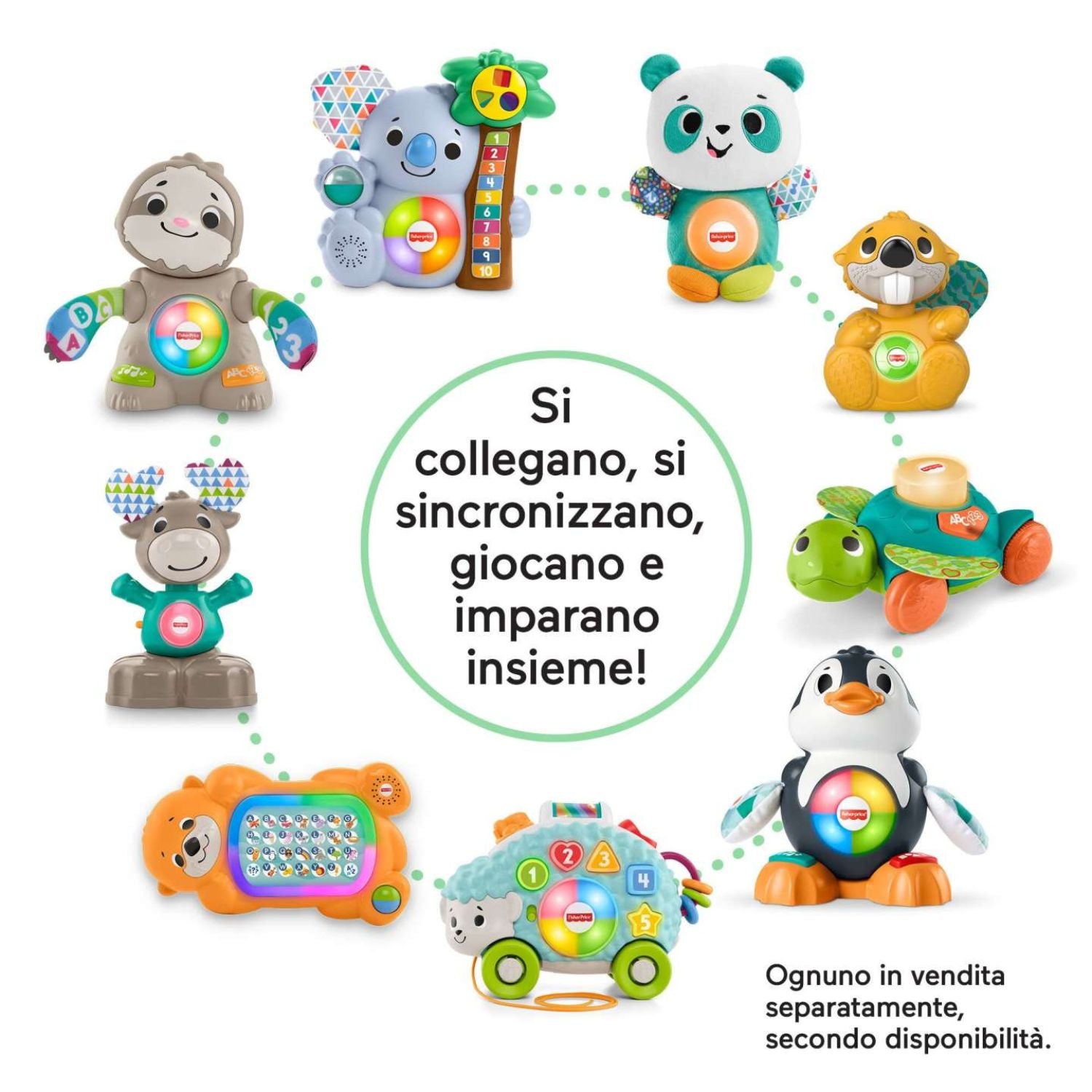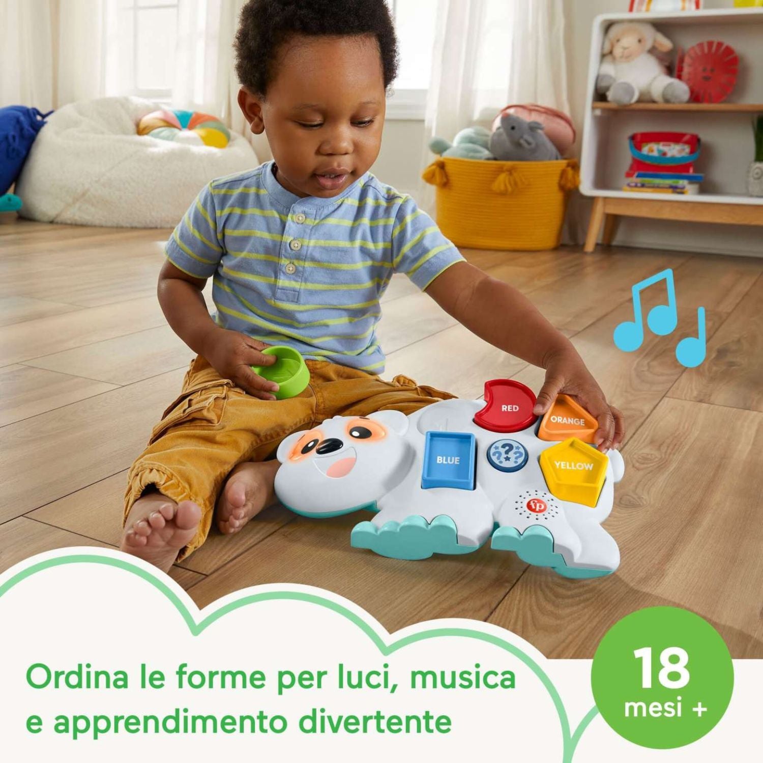 - Cerca gli altri giocattoli Parlamici per farli interagire con Fabietto Orsetto Forme e Colori (ognuno in vendita separatamente, secondo disponibilità).